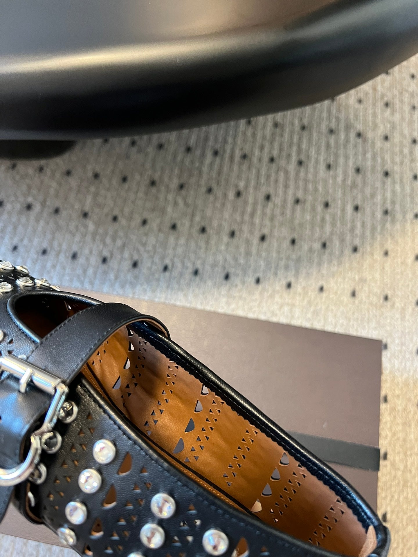 Alaia 25 Biker Ballet Flats Black Horsehair Sheepskin 303729