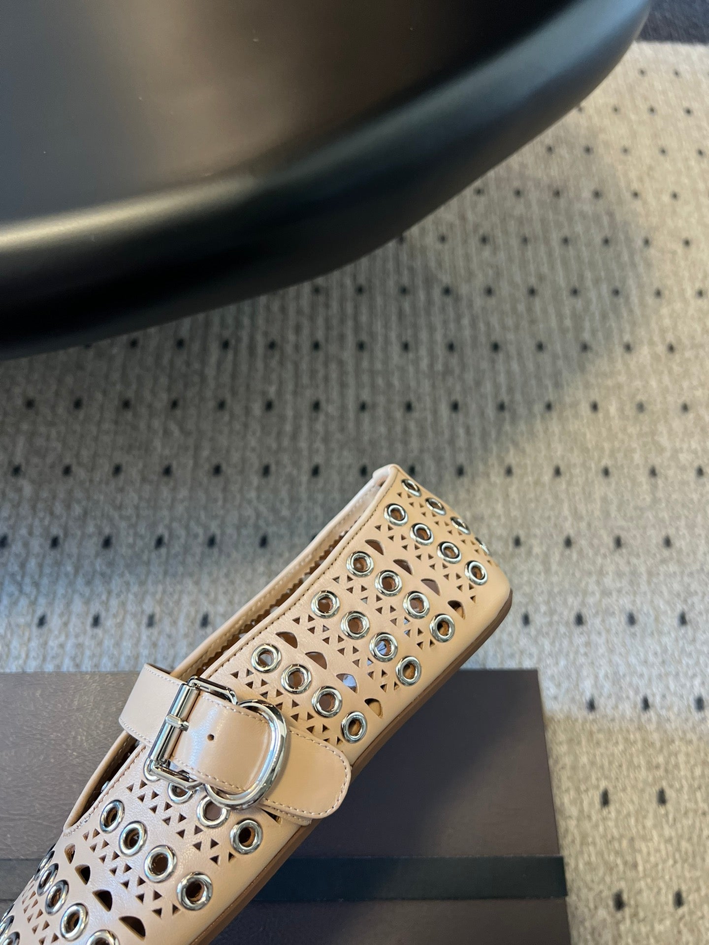 Alaia 25 Vienne With Eyelets Ballet Flats Nude Lambskin 303718