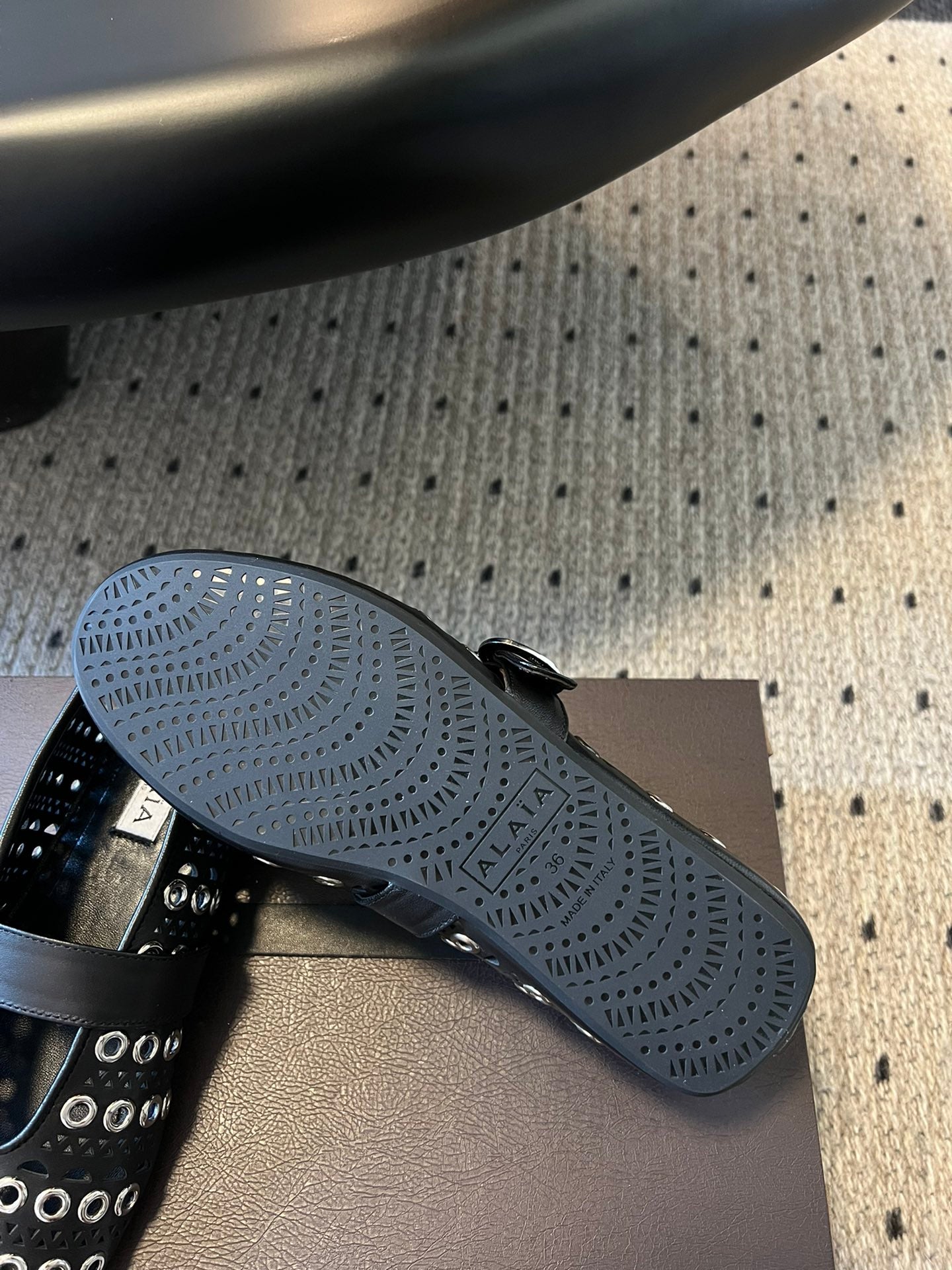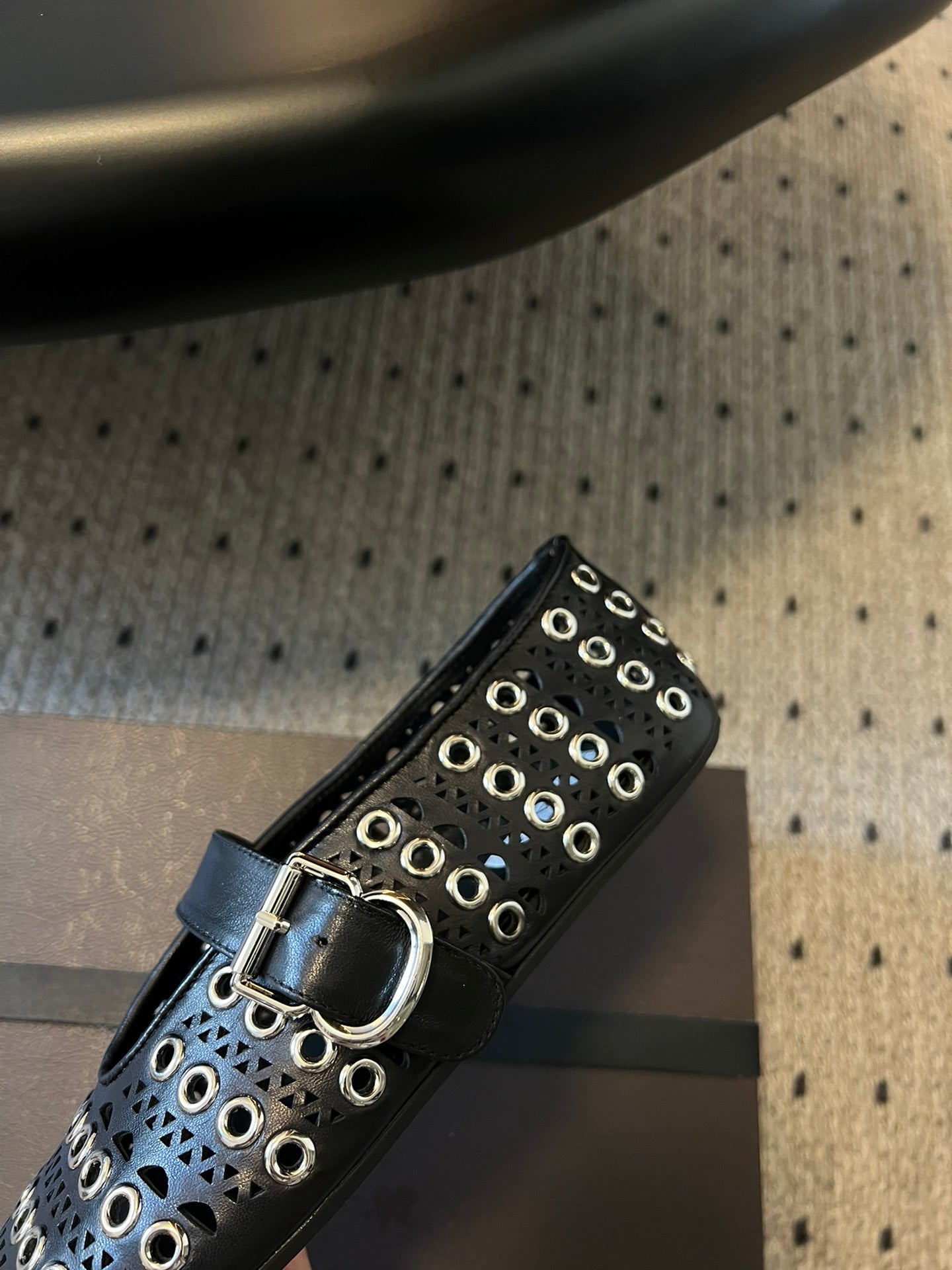 Alaia 25 Vienne With Eyelets Ballet Flats Black Lambskin 303720