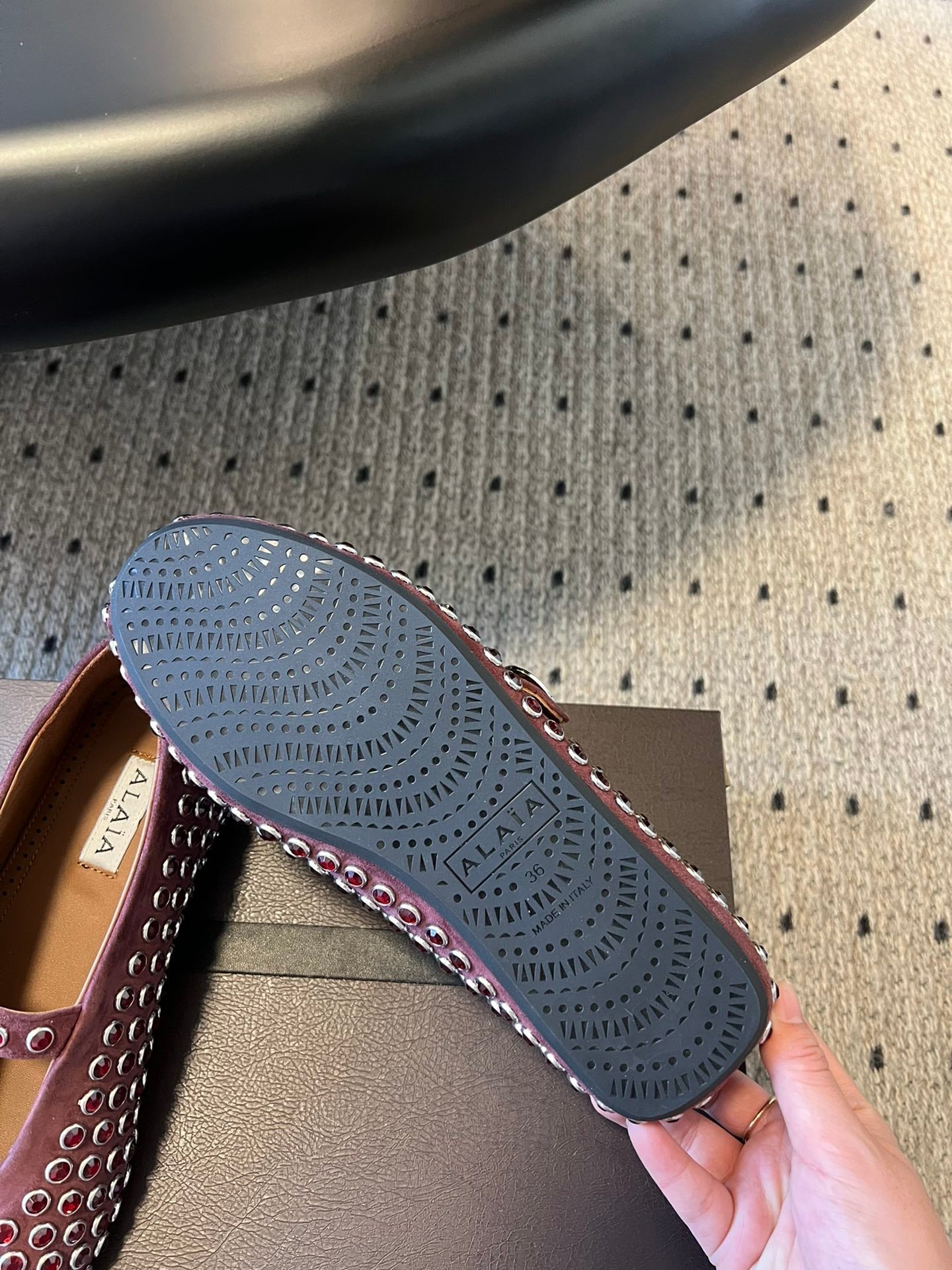 Alaia 25 Strass Ballet Flats Garnet Red Suede Goatskin 303725
