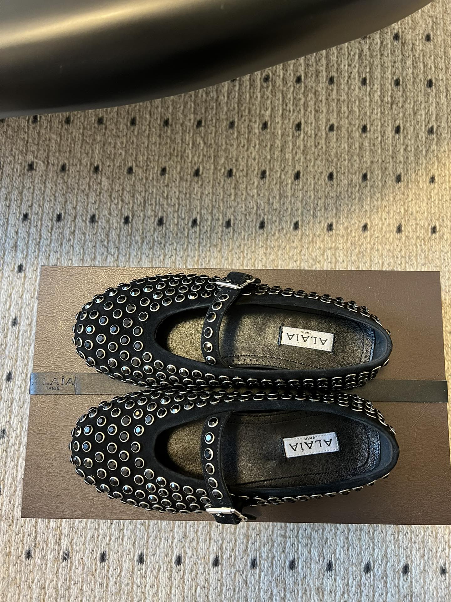 Alaia 25 Vienne With Strass Ballet Flats Black Lambskin 303722