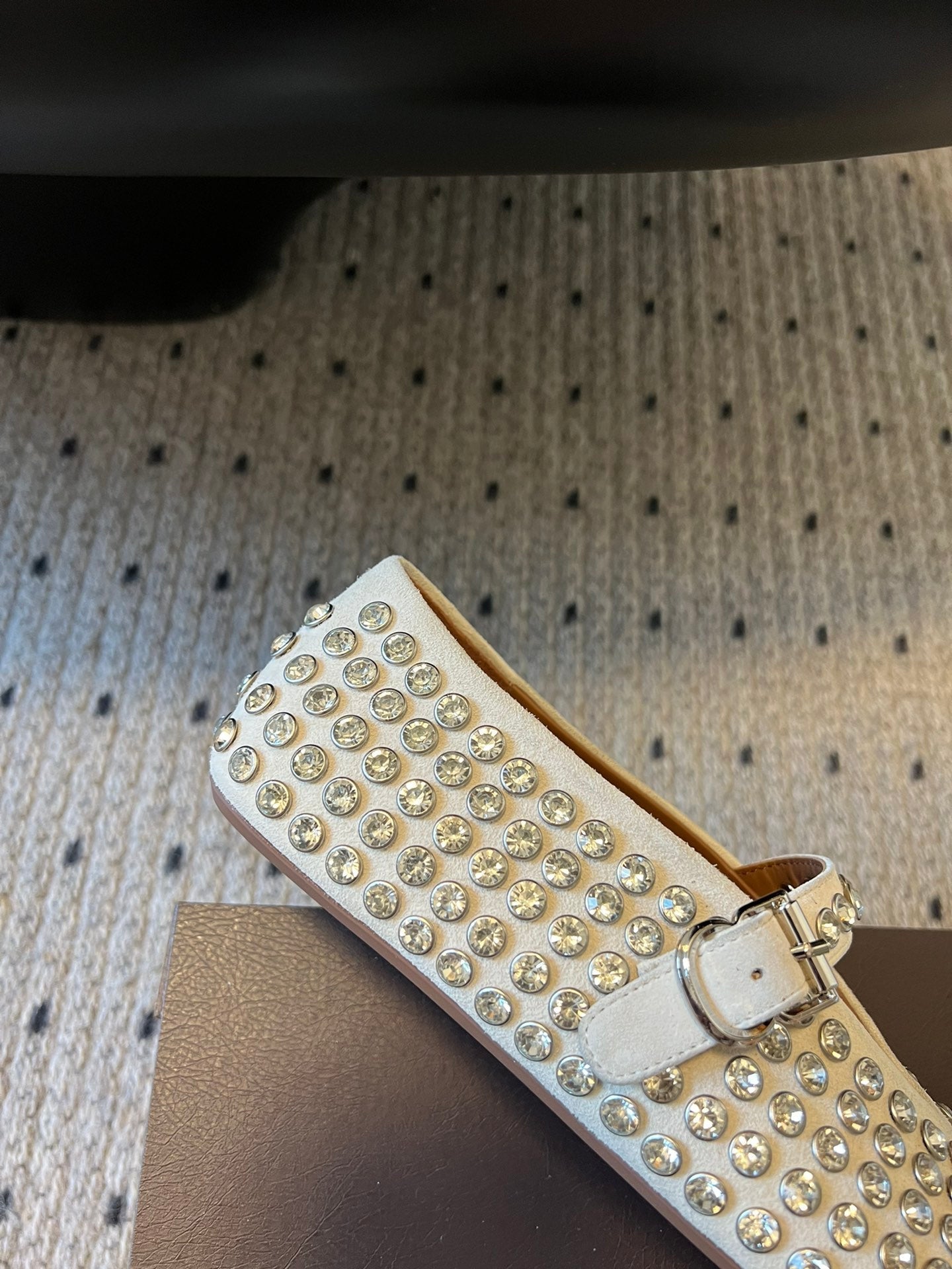 Alaia 25 Strass Ballet Flats White Suede Goatskin 303727