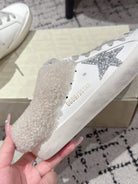 Golden Goose 2025 Star Sabot Shearling-lined Mule White Silver Cowhide Wool 500587