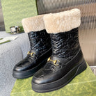 Gucci 2025 Monogram Boot Black Beige Wool Calfskin 564686
