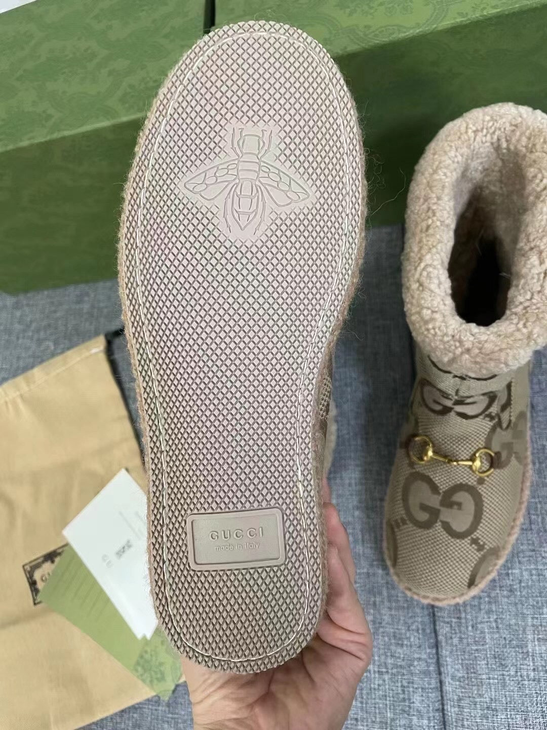 Gucci 2025 Monogram Boot Ebony Beige Canvas Wool 564788