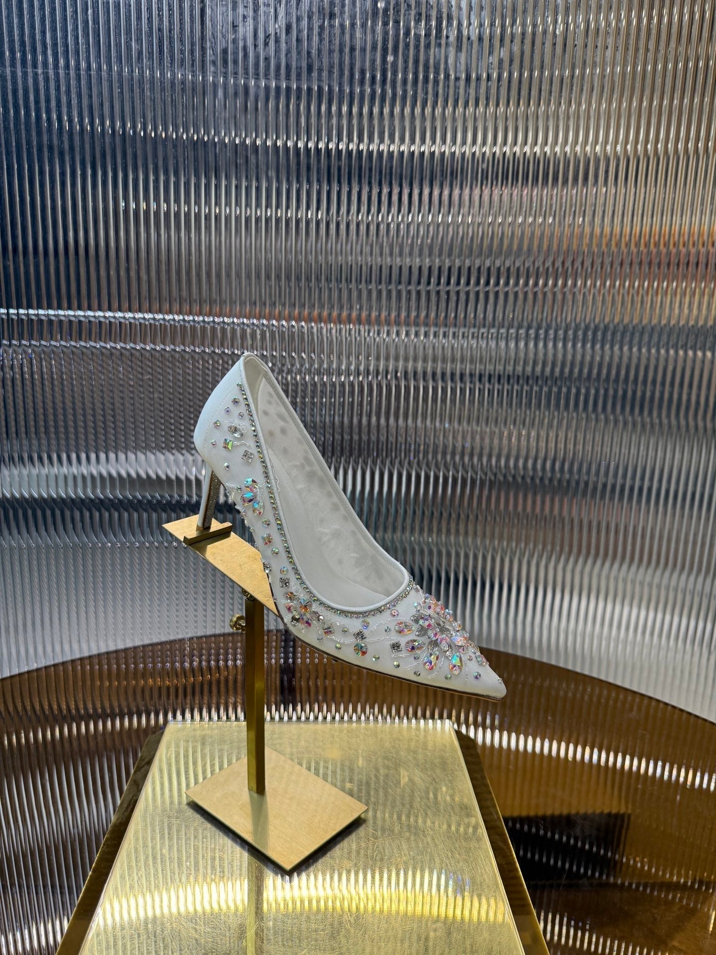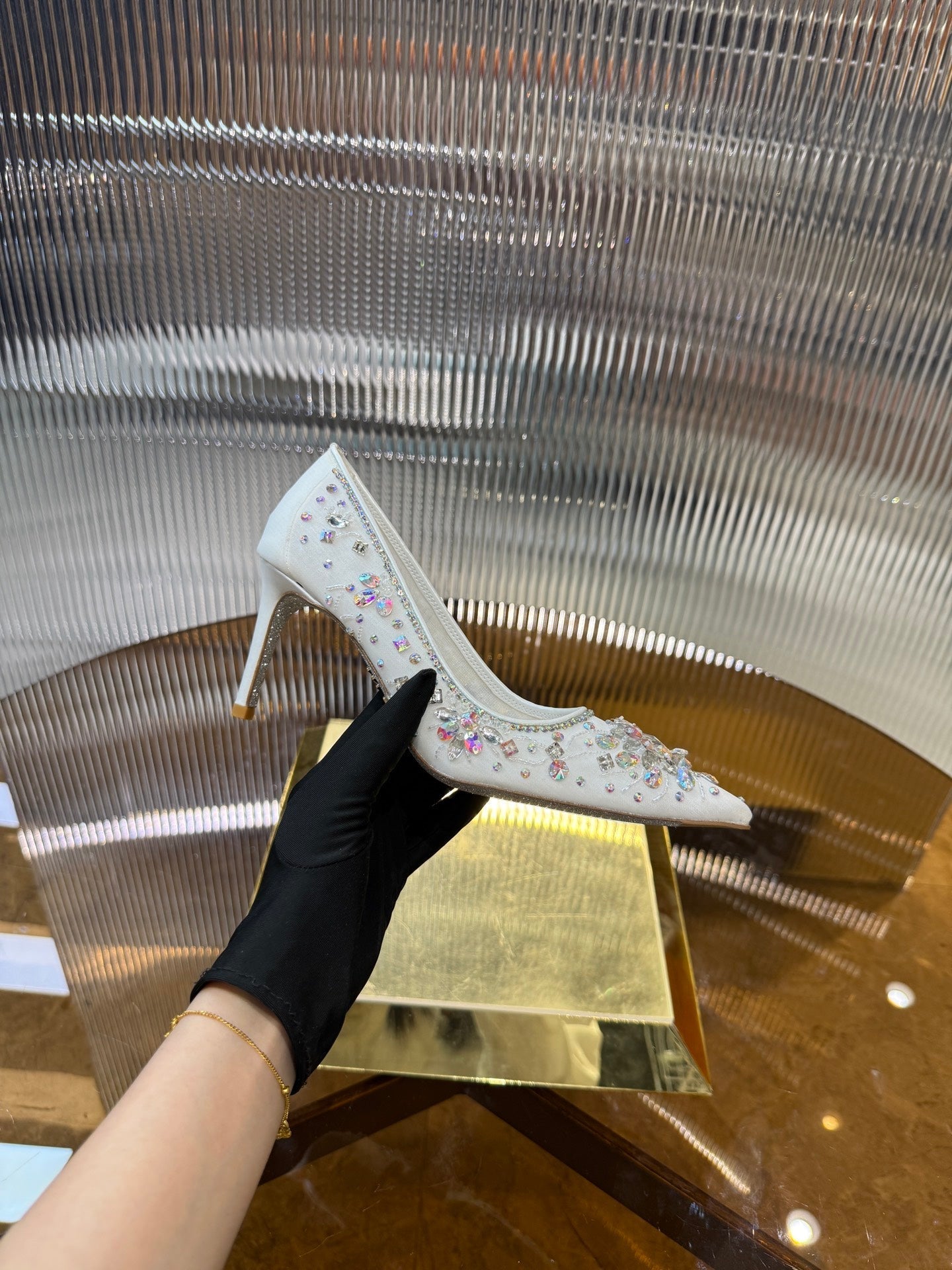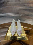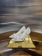 RC 25C Crystal Pearl Gem Lace High Heels White Sheepskin 275753