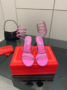 RC Sandals 9.5cm Dark Pink Silk Creole Crystal Diamond 302607