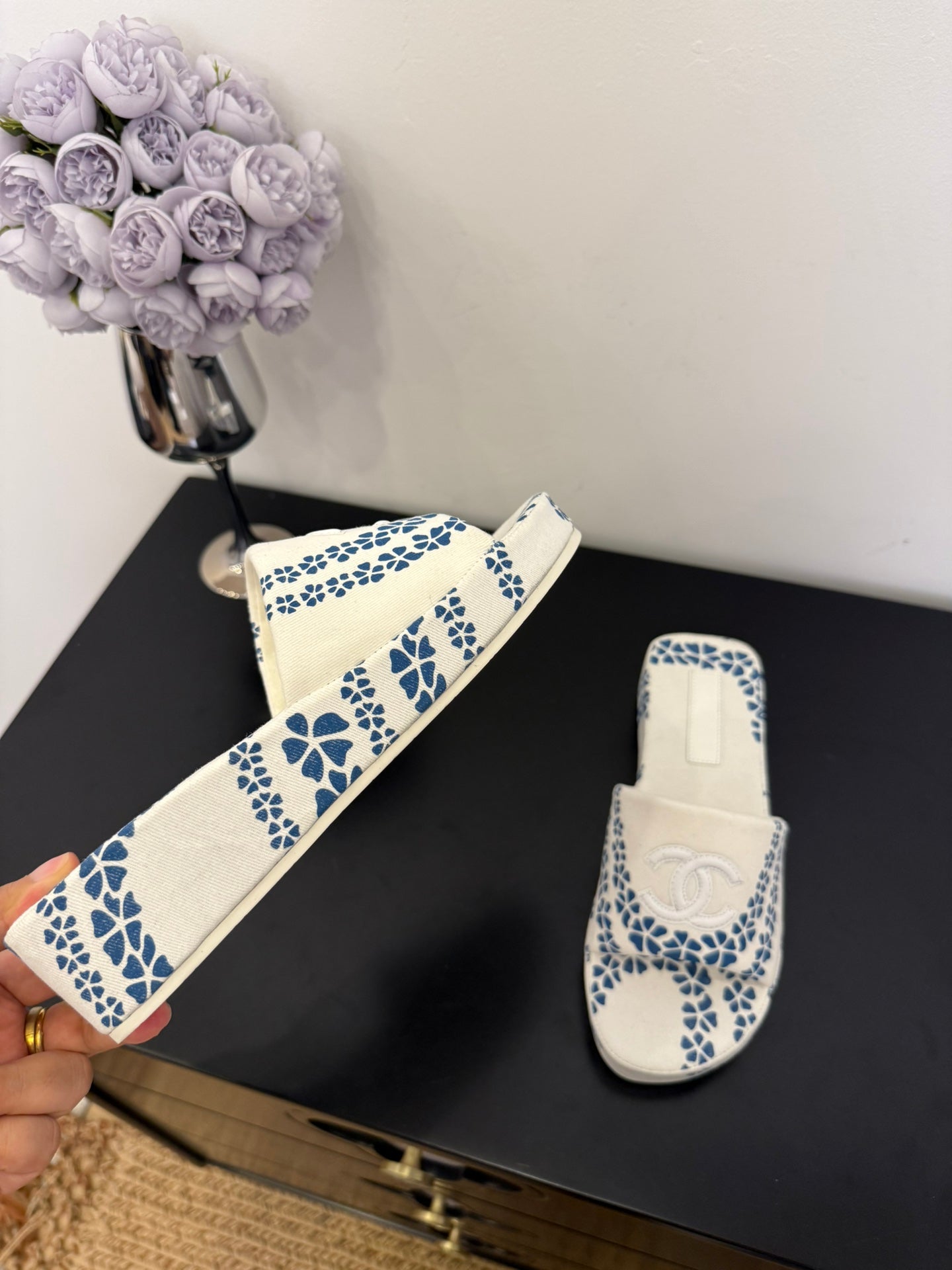 CC 25 Thong Slippers Black Woolen Cloth 311099