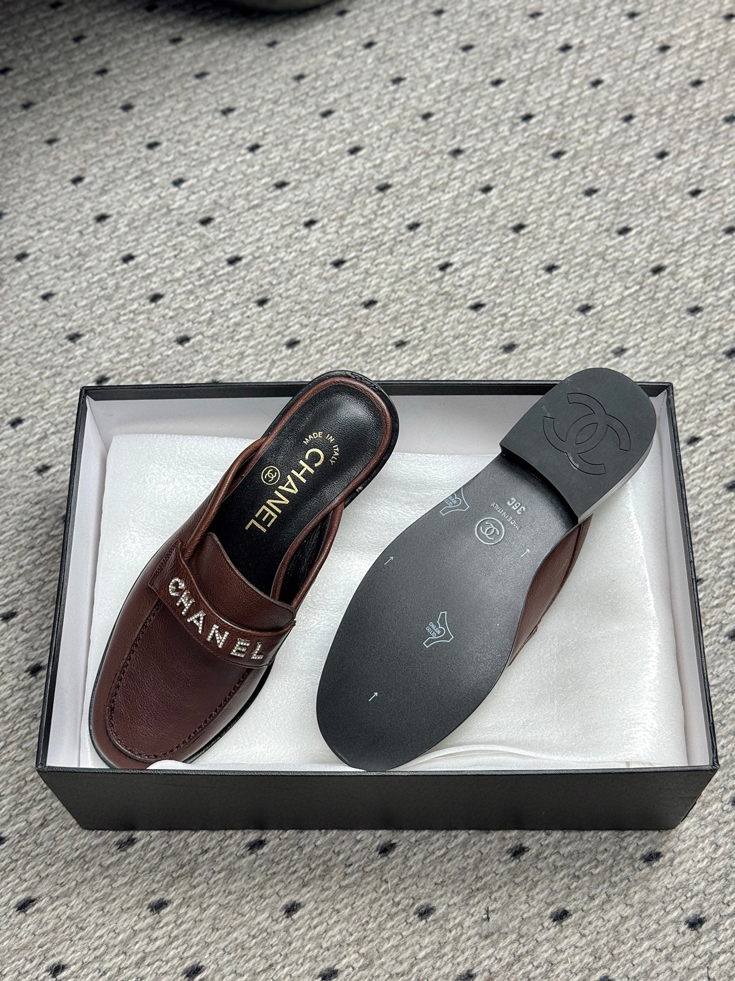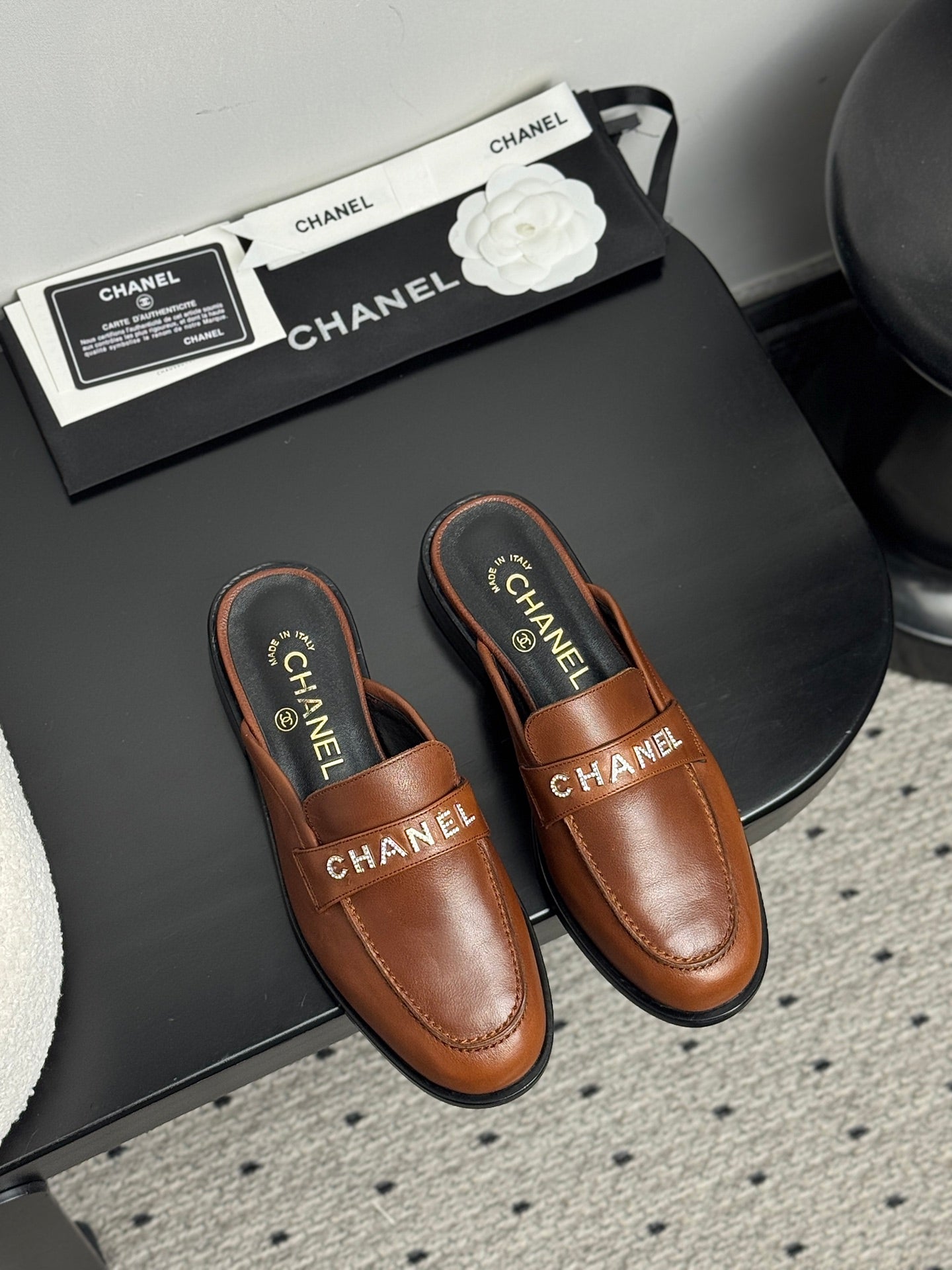 CC 25 Ballet Flats Mules Camel Brown Calfskin 331656