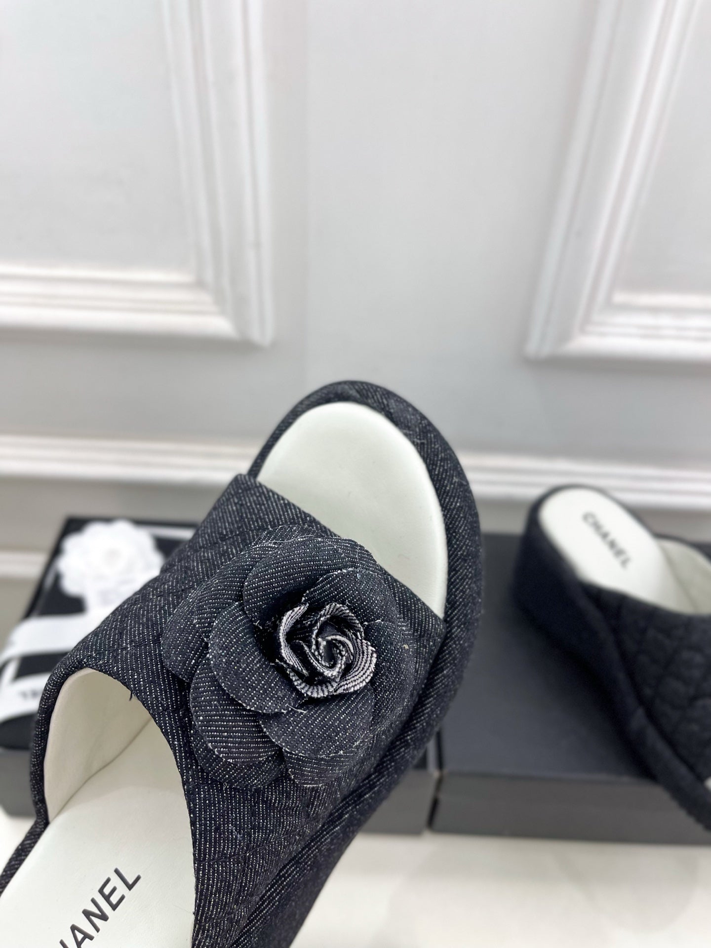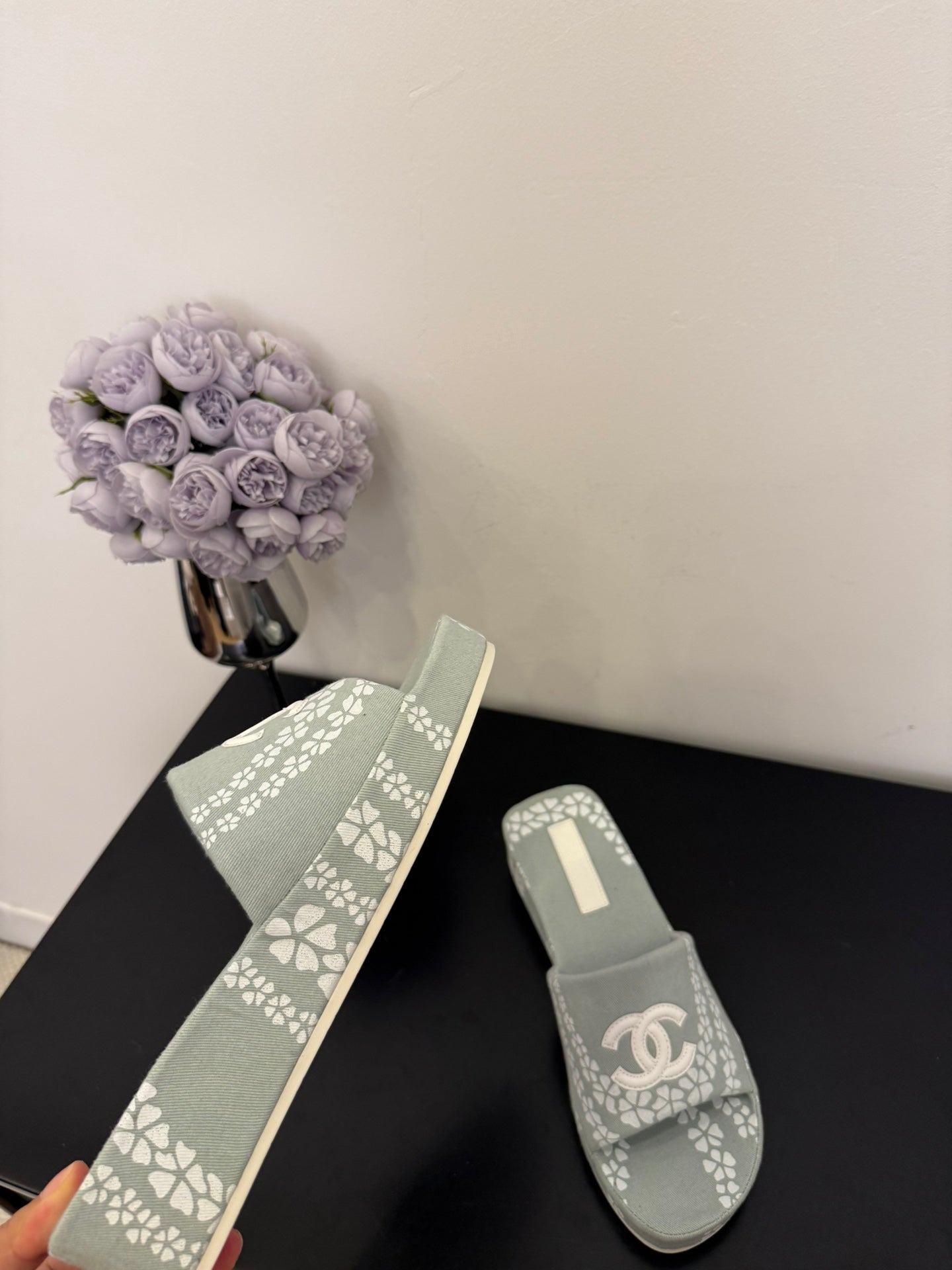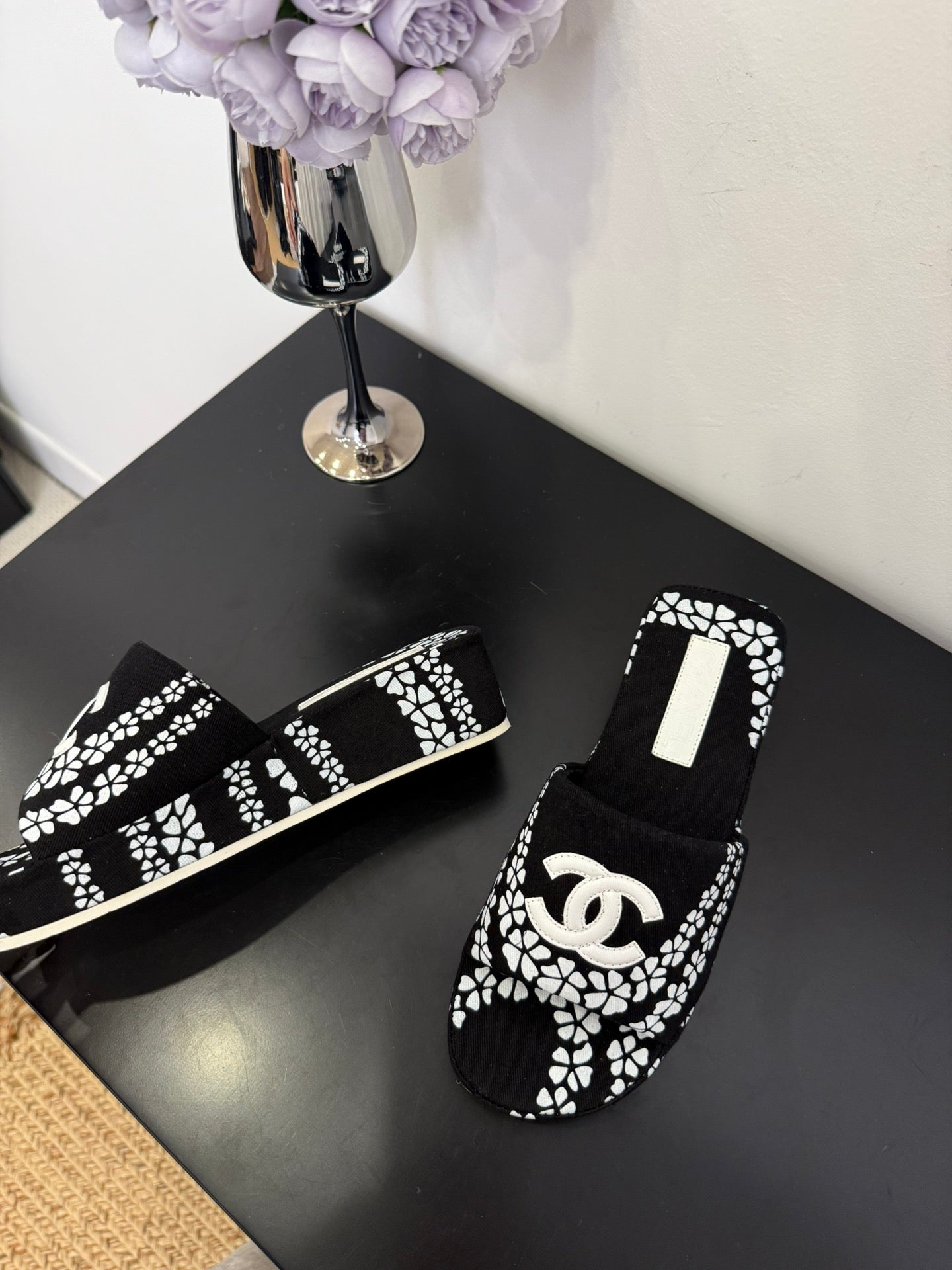 CC 25 Flower Slippers Black Fabric 330771