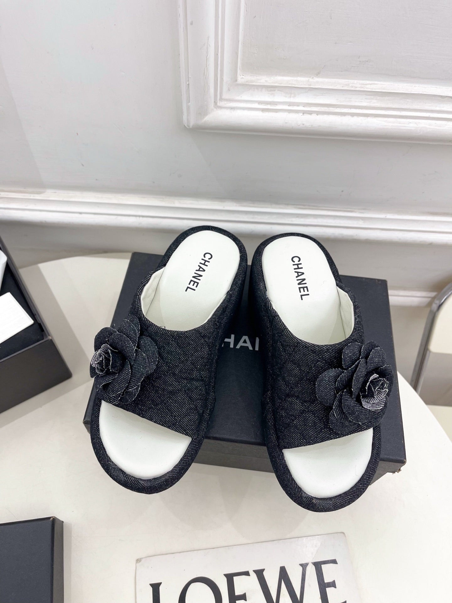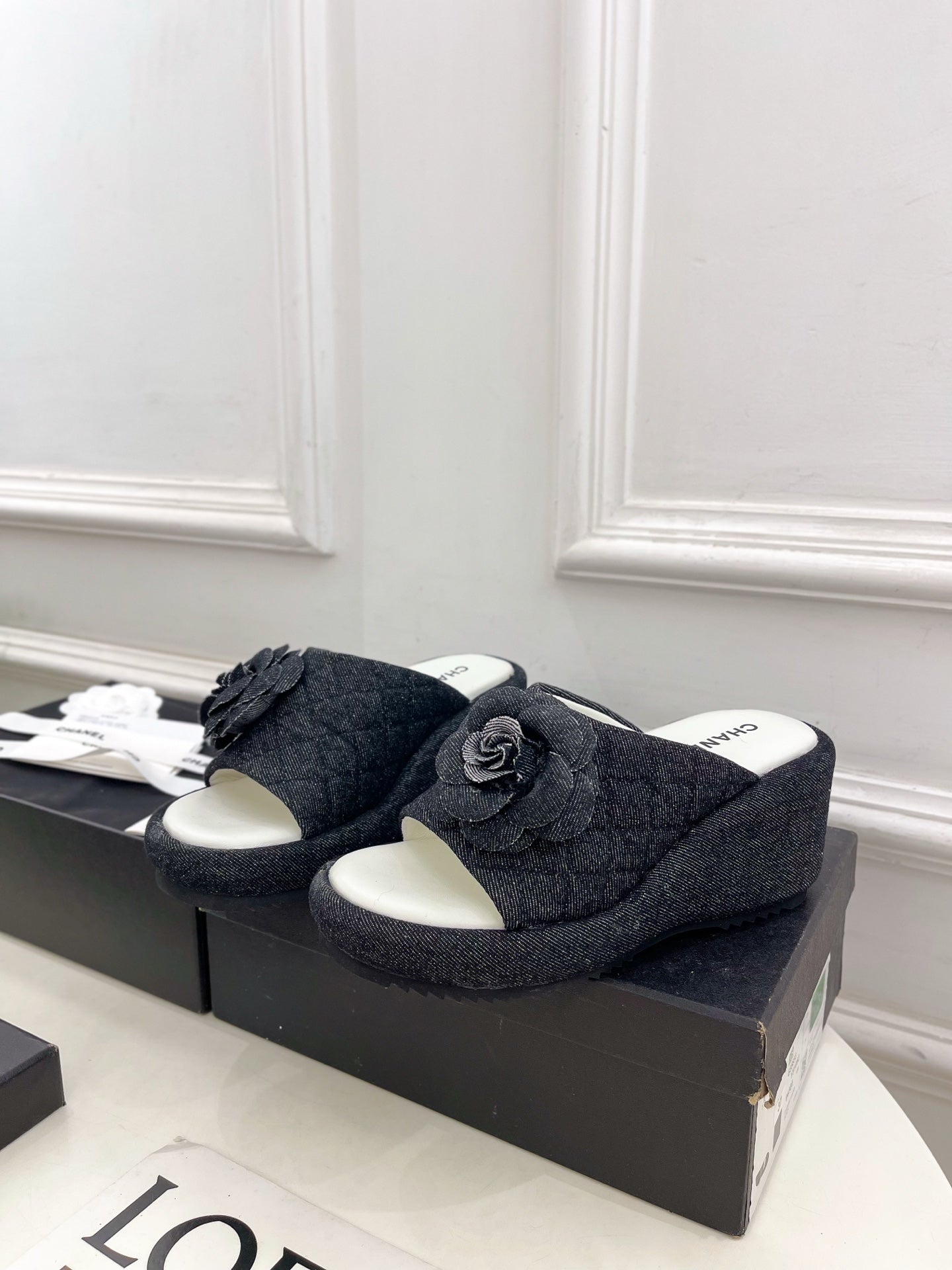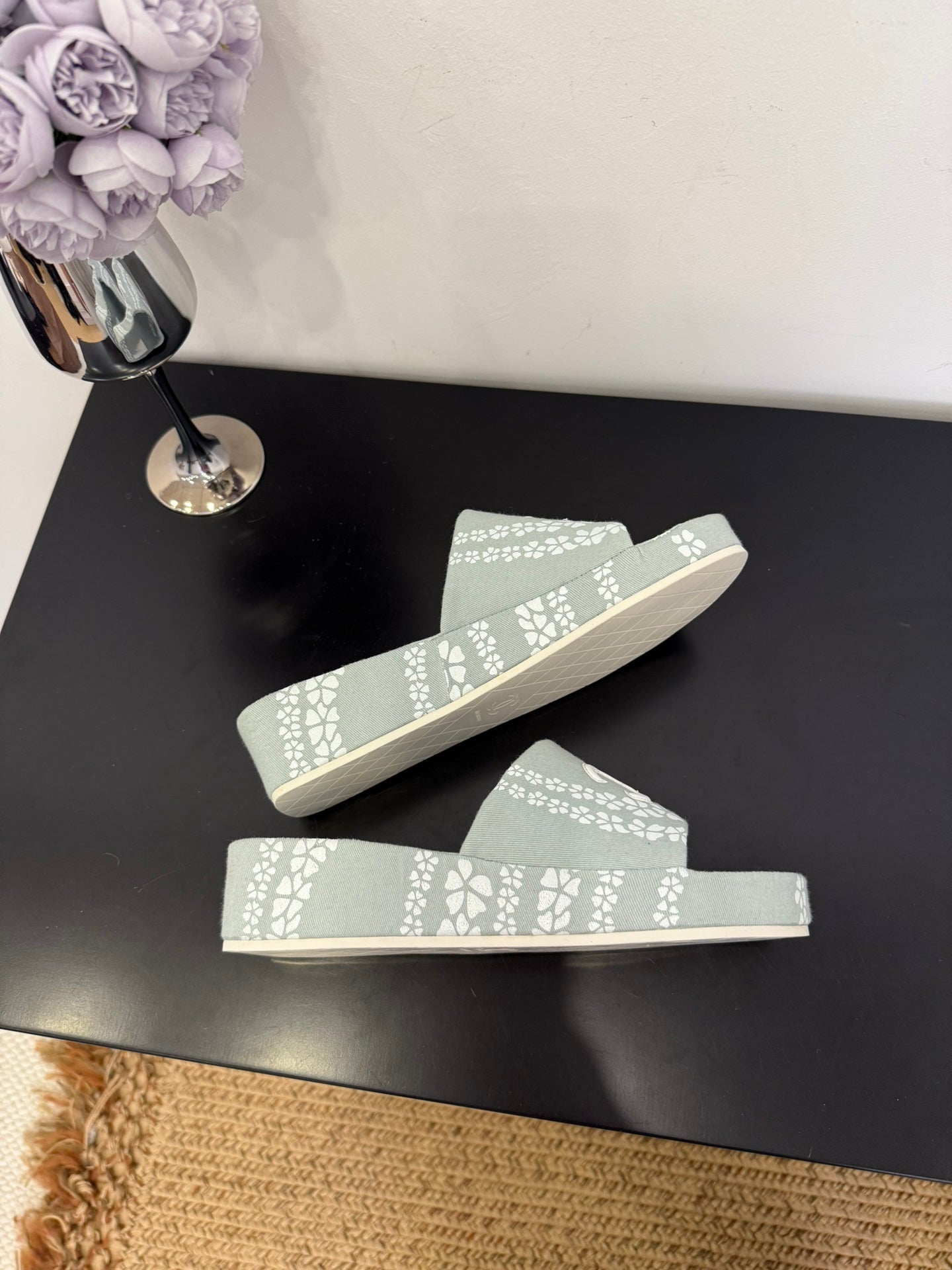 CC 25 Flower Slippers Black Fabric 330771