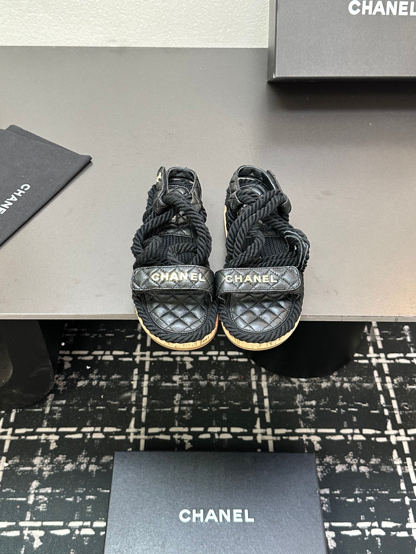 CC Sandals Black Rope Lambskin 331281