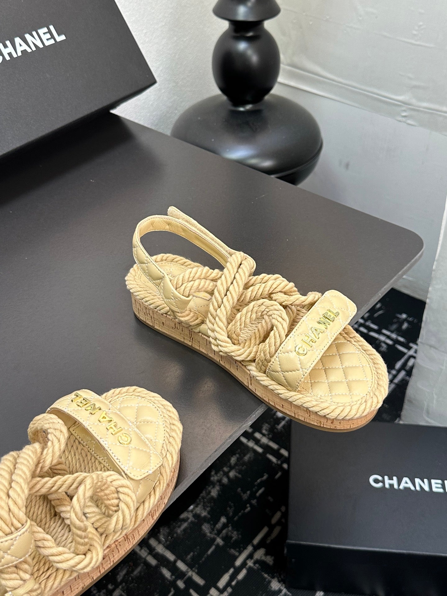 CC Sandals Beige Rope Lambskin 331282