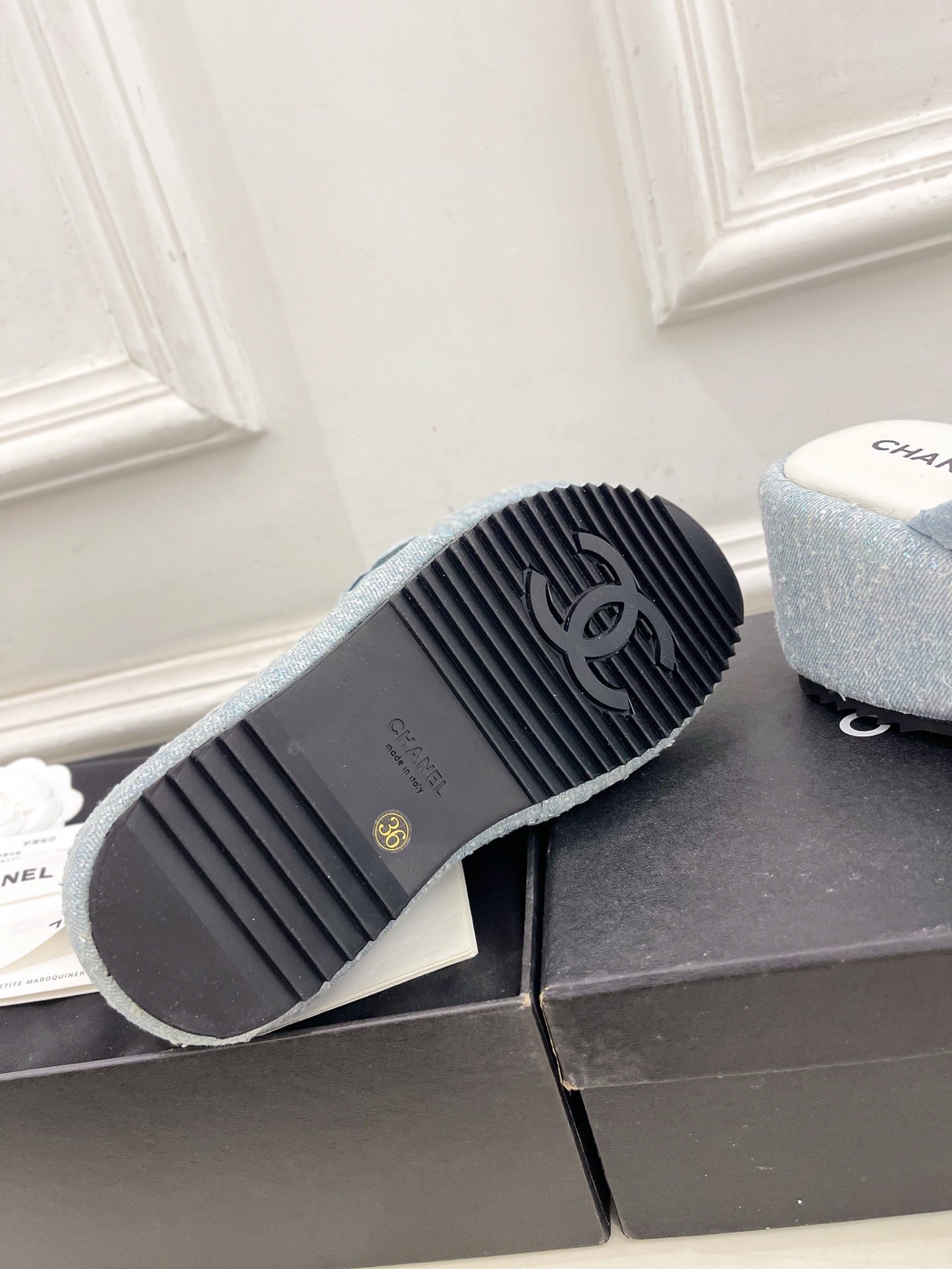 CC 25 Ballet Flats Mules Grey Calfskin 331657