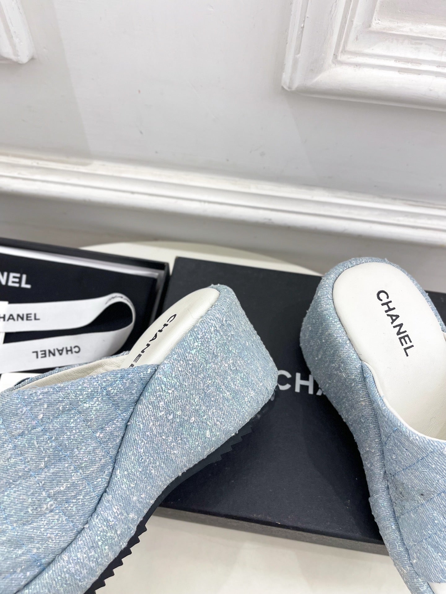 CC 25 Platform Slippers Blue Sheepskin 331006