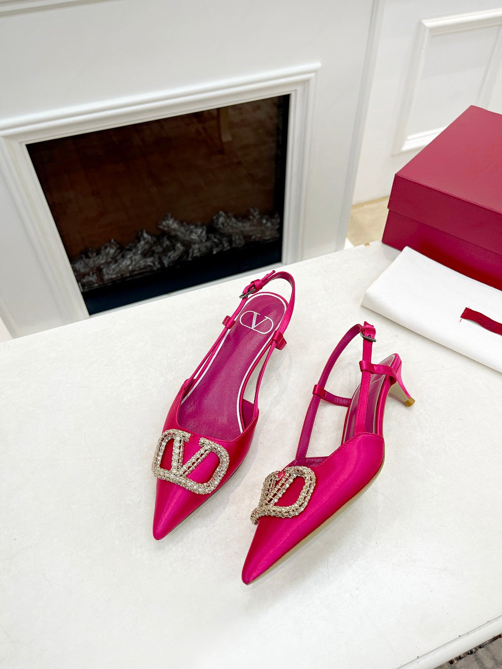 Valentino 25 Vlogo Signature Slingback Pumps Hot Pink Pastel Silk 239502