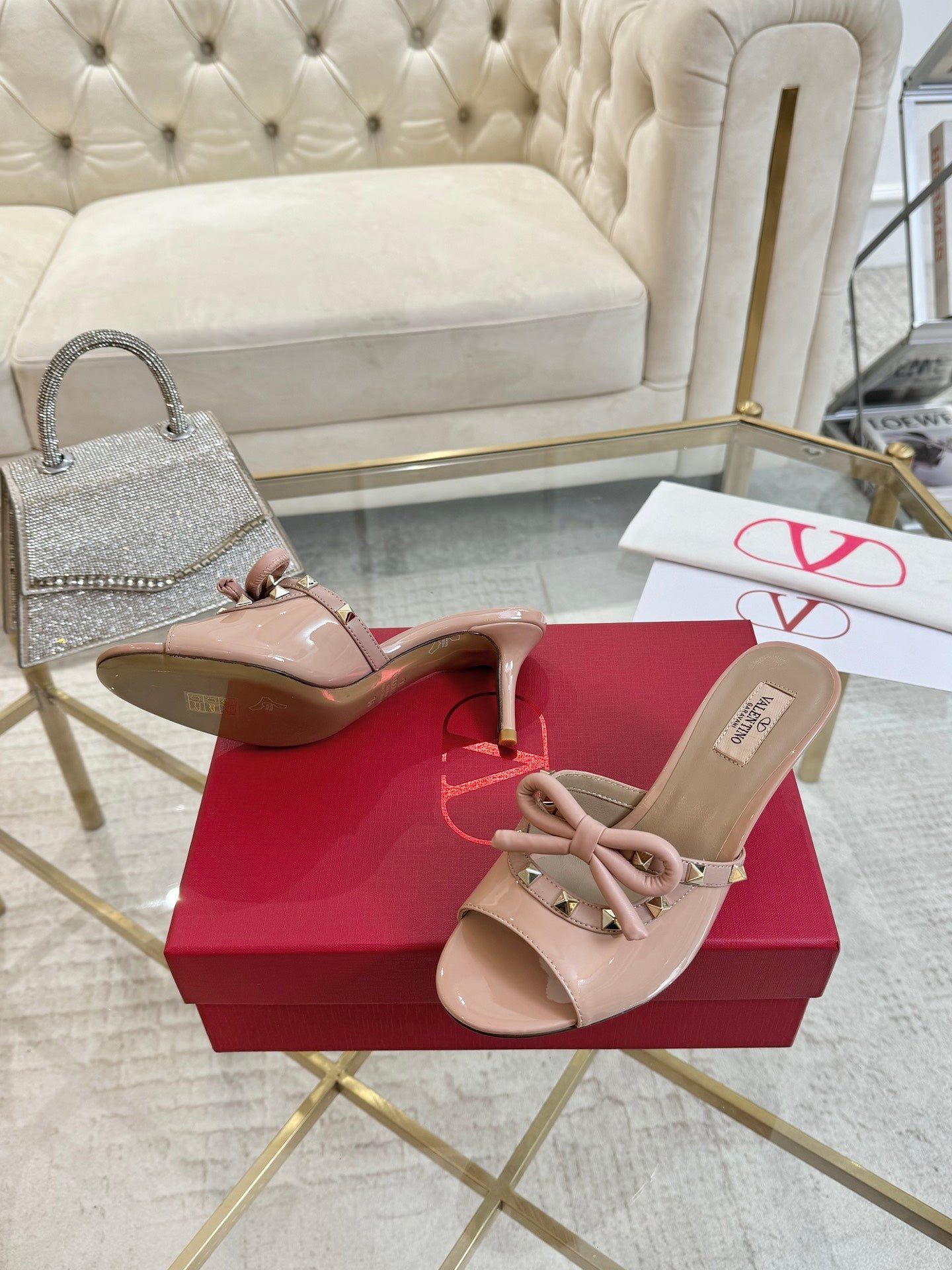 VT 25 Rockstud Bow Mule Pink Nude Patent Leather