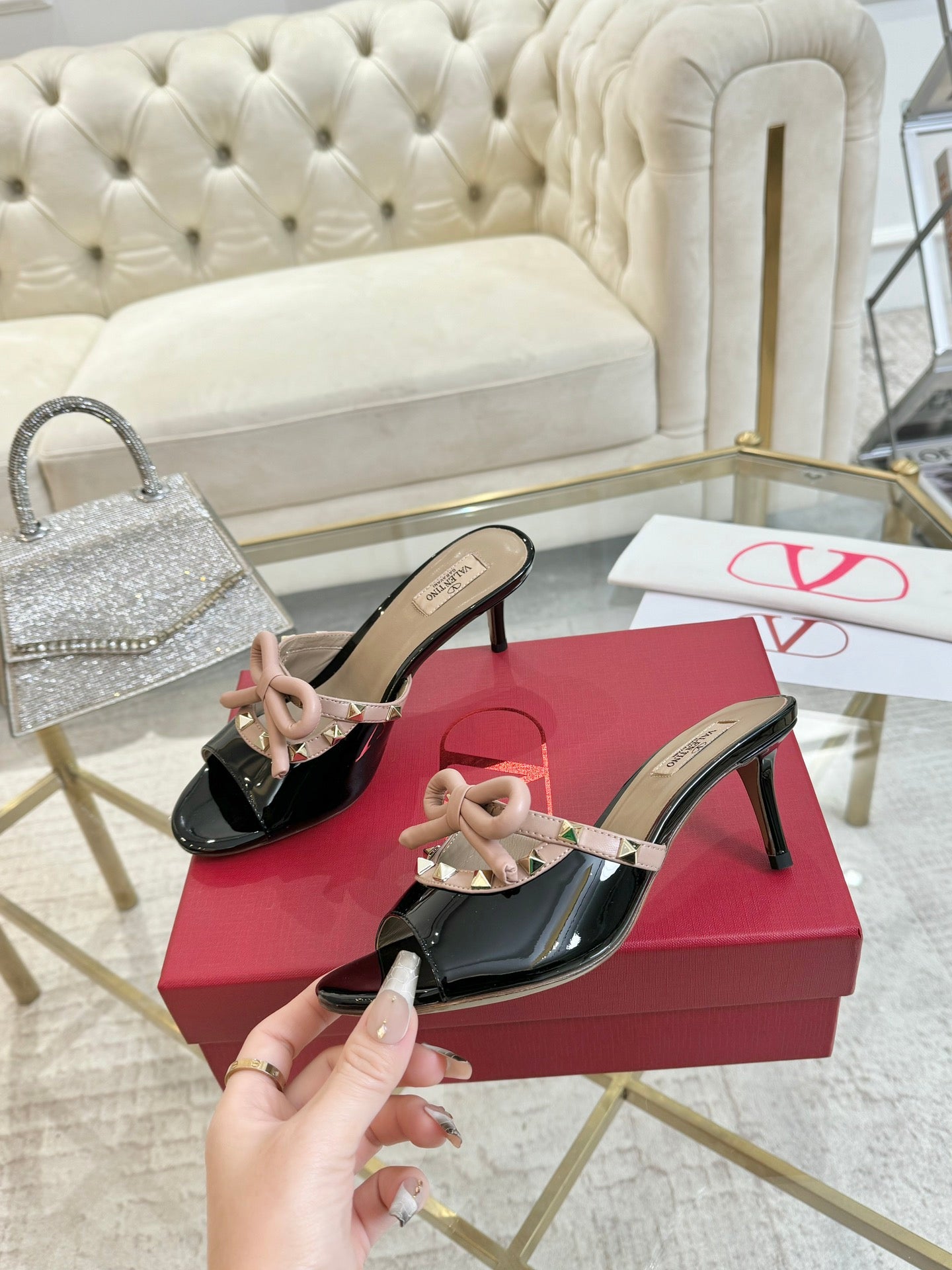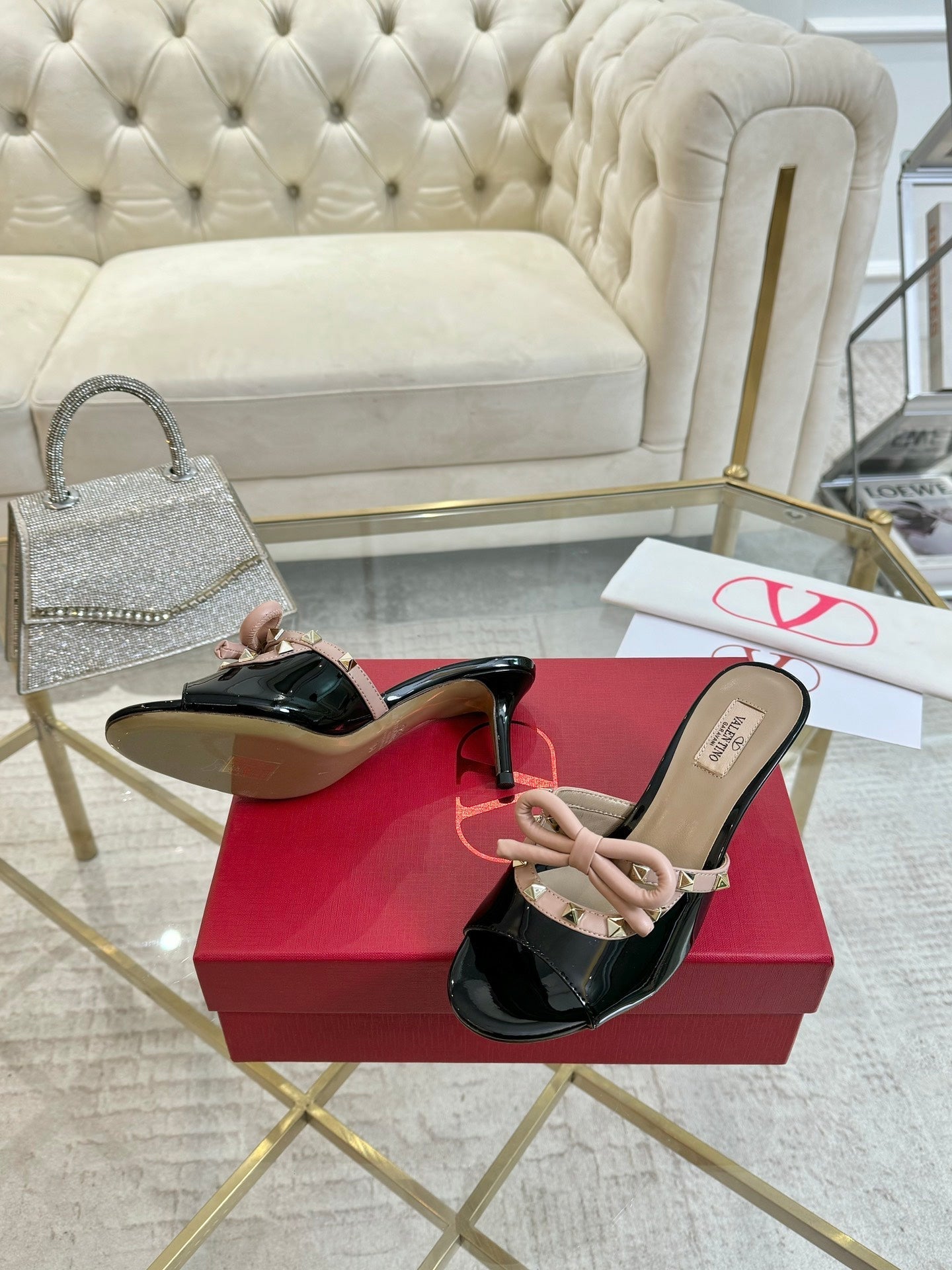VT 25 Rockstud Bow Mule Black Pink Patent Leather