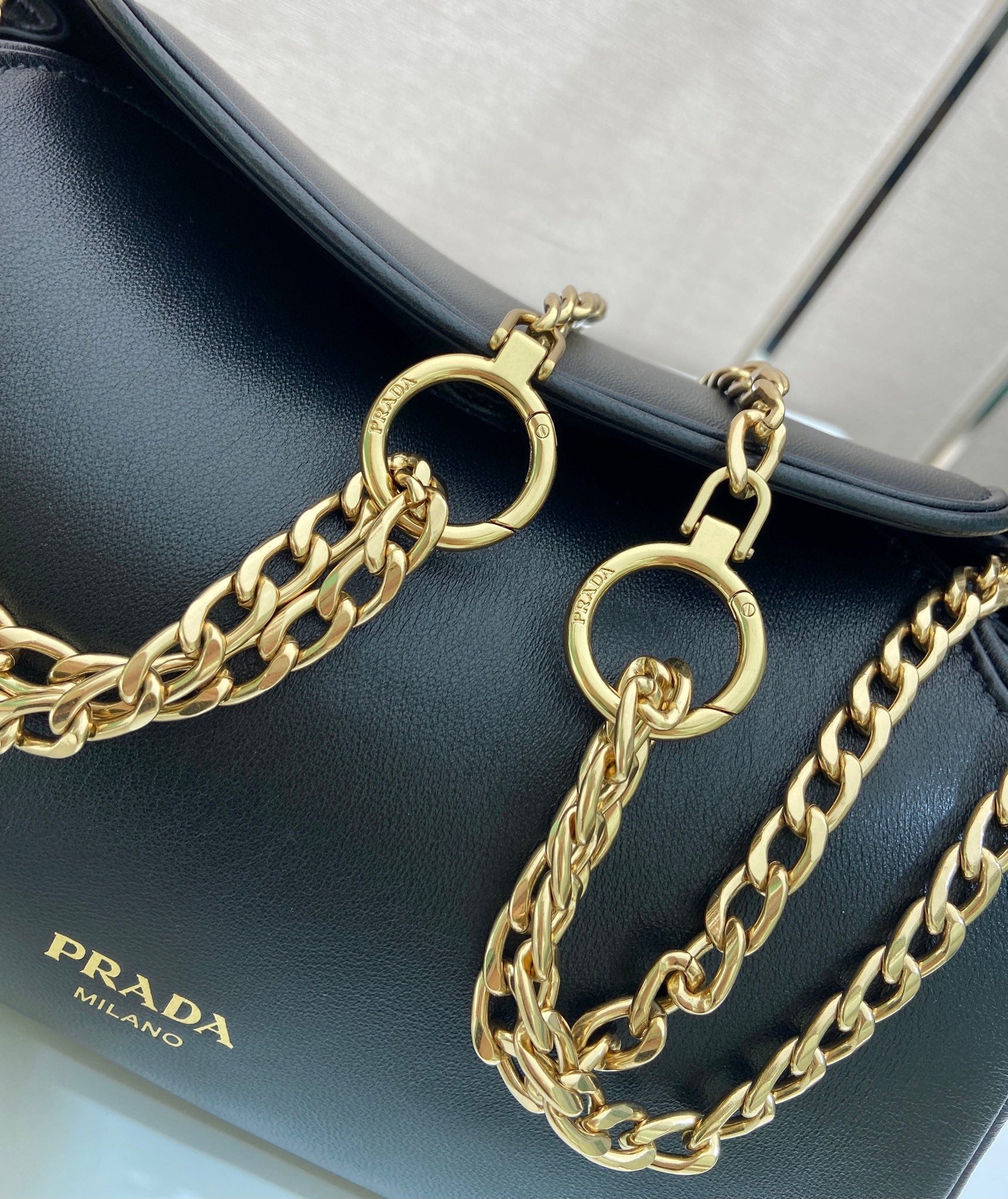PRA 26 SHOULDER BAG IN BLACK RE-NYLON AND SAFFIANO LEATHER