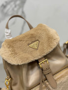 BACKPACK 25 IN BEIGE PARACHUTE FABRIC AND RABBIT FUR