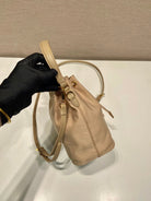 BUCKET BAG 19 IN BEIGE RE-NYLON AND SAFFIANO LEATHER HANDLE