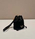 MINI BUCKET BAG 10 IN BLACK RE-NYLON AND SAFFIANO LEATHER STRAP