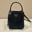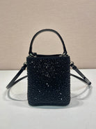 PANIER BUCKET BAG 16 IN BLACK CALFSKIN ATTACHED FULL CRYSTALS