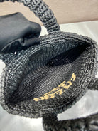 SMALL CROCHET TOTE BAG 24 IN BLACK MIX YELLOW RAFFIA