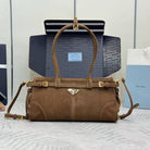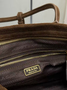 TOTE BAG WITH BELT 32 IN RUSSET BROWN SUEDE GOLD HARDWARE