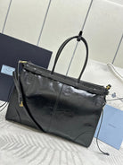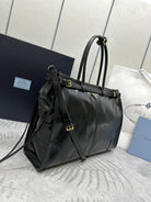 TOTE BAG WITH BELT 42 IN BLACK OIL WAX LAMBSKIN GOLD HARDWARE