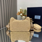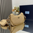 WOVEN HOBO BAG 23 IN BEIGE RAFFIA GOLD HARDWARE TRIANGLE LOGO