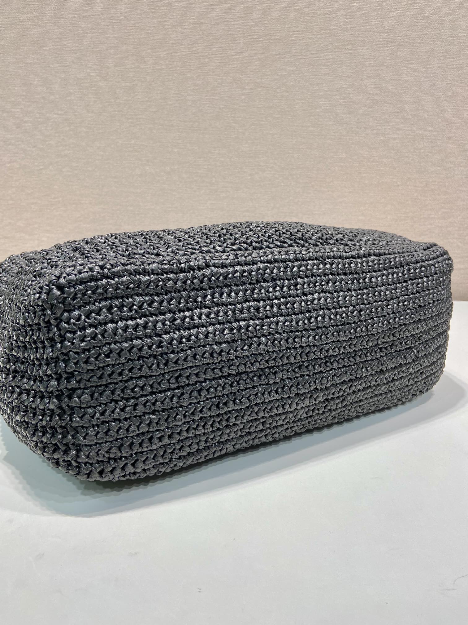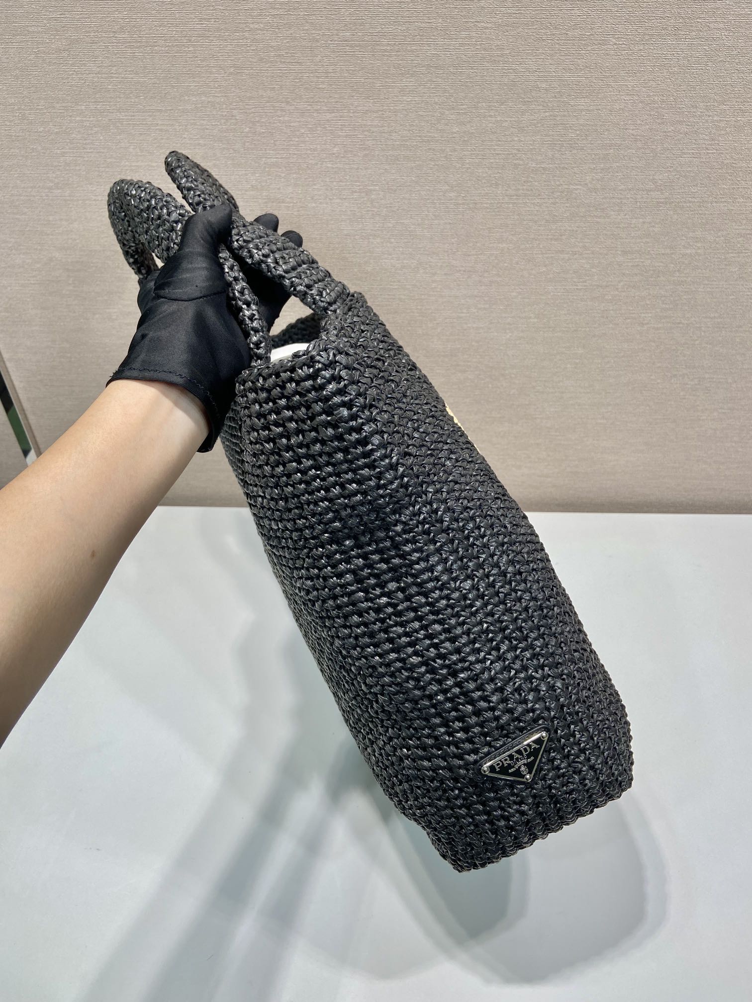SMALL CROCHET TOTE BAG 24 IN BLACK MIX YELLOW RAFFIA