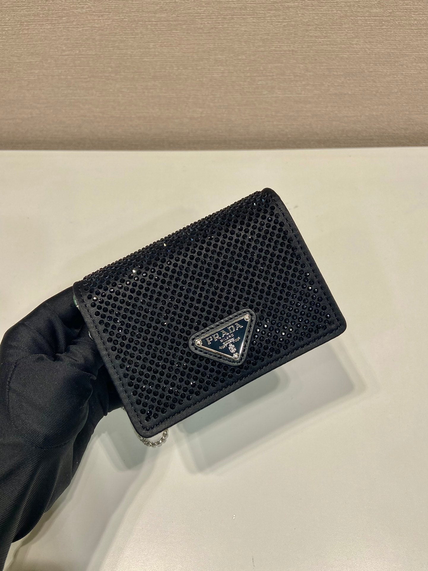 Pra Mini Pouch With Crystal Black Satin