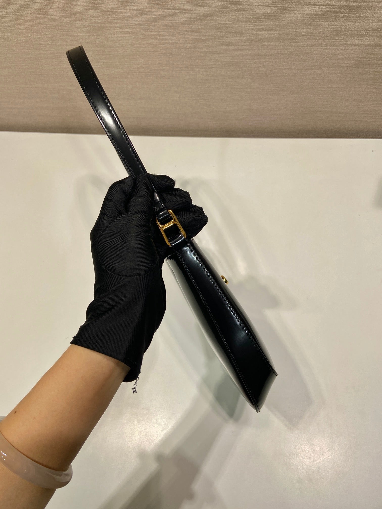 MINI HAND BAG 11 WITH GOLD STRAP IN BLACK PATENT CALFSKIN
