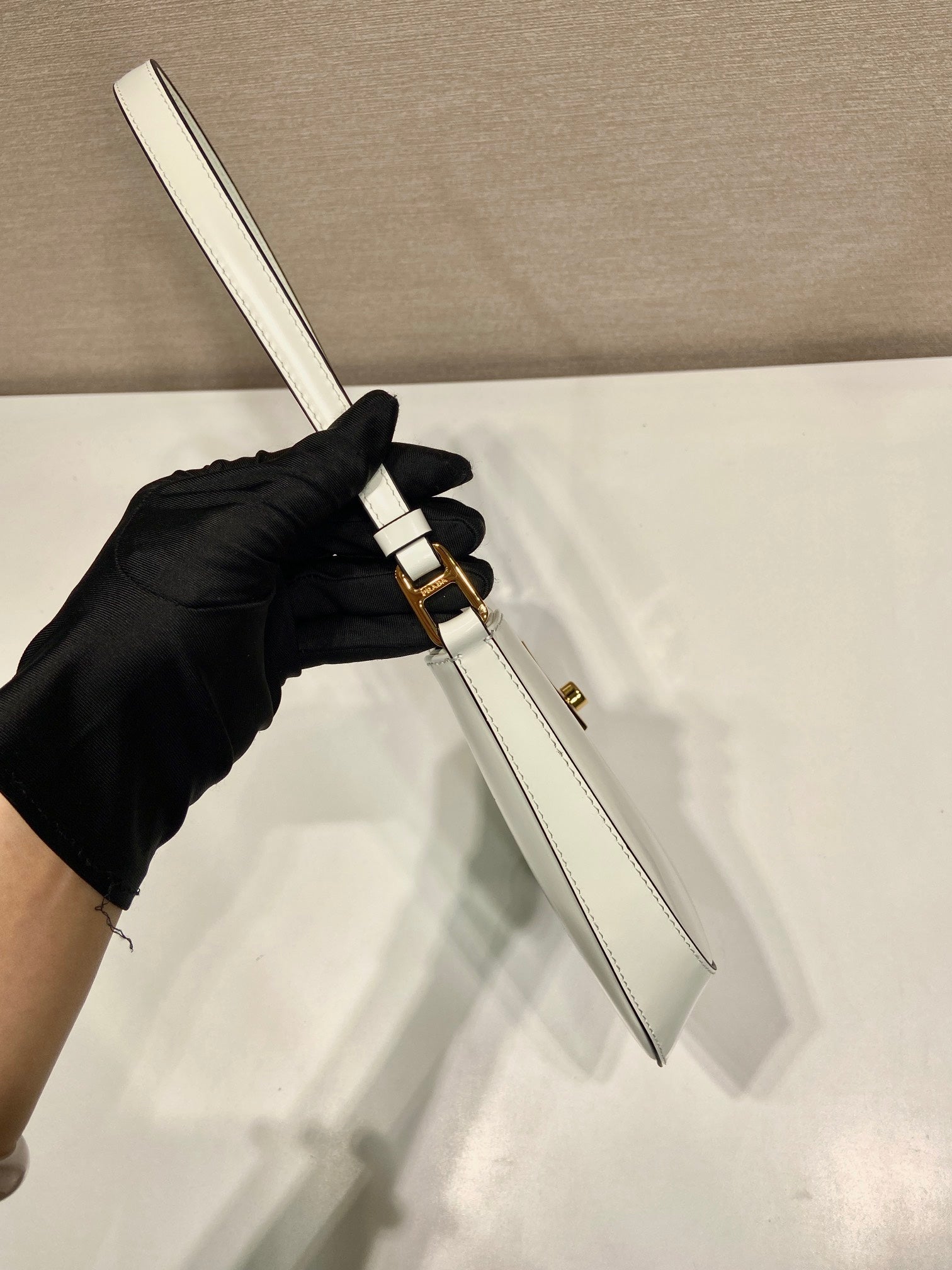 PRA 23 MOON PADDED BAG WHITE CALFSKIN WITH STRAP