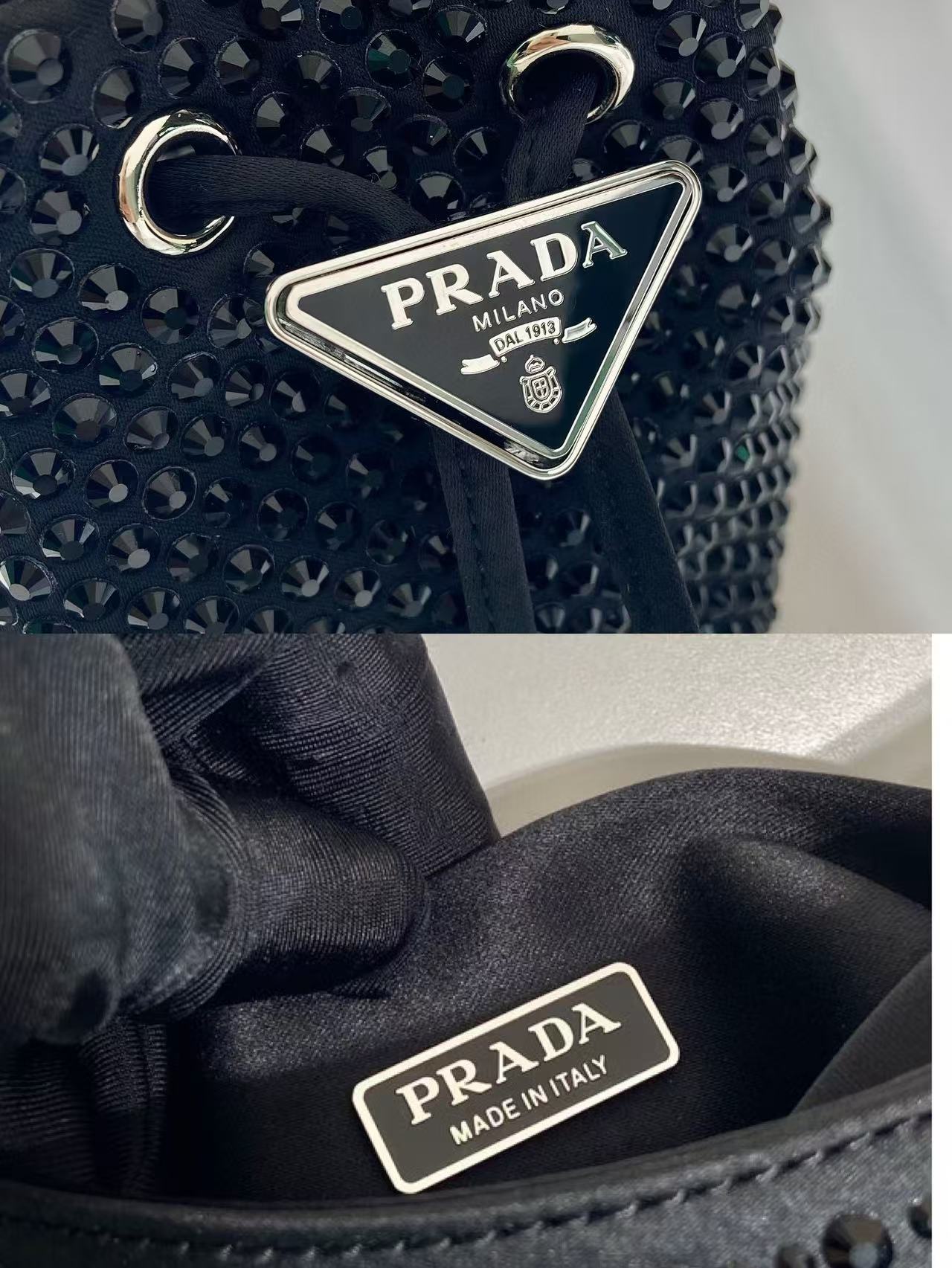PRA 22 BAG IN BLACK SATIN WITH RHINSTONE SILVER HARDWARE