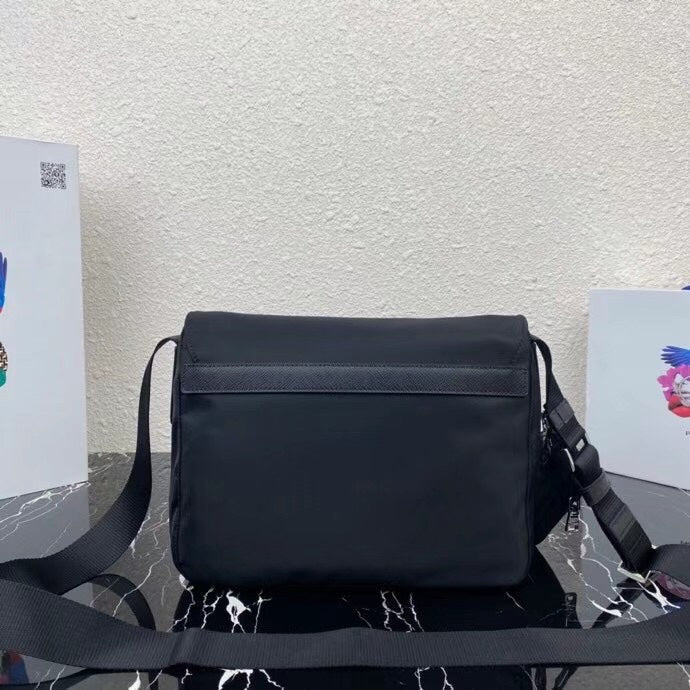 PRA 26 SHOULDER BAG IN BLACK RE-NYLON AND SAFFIANO LEATHER
