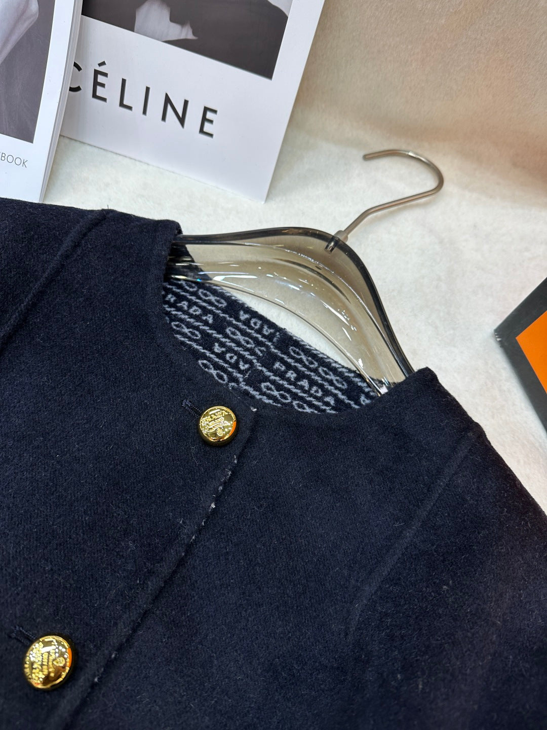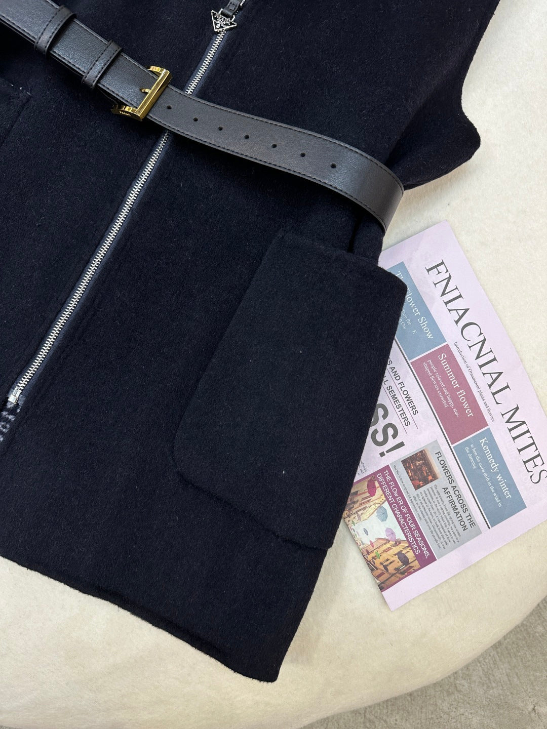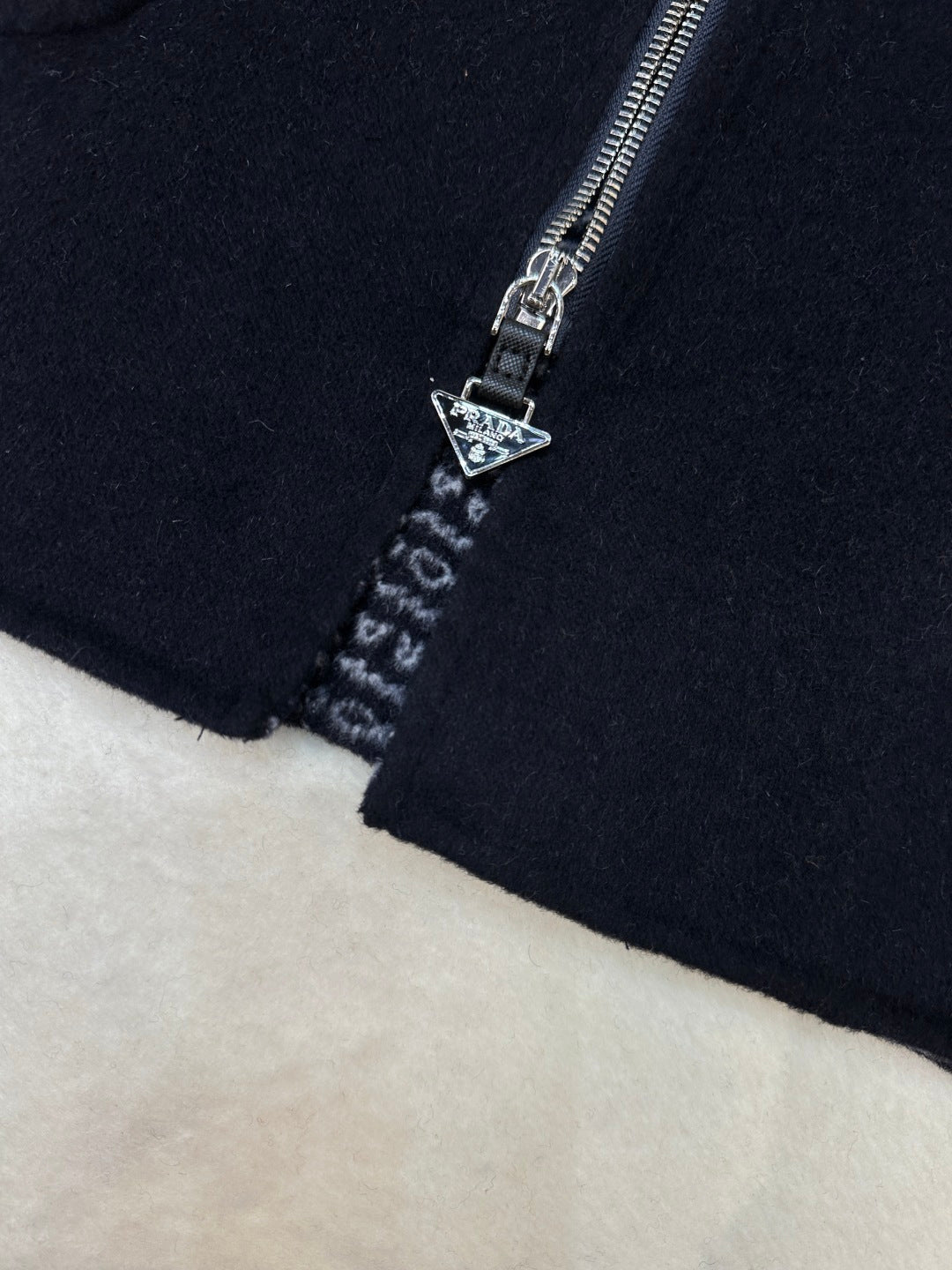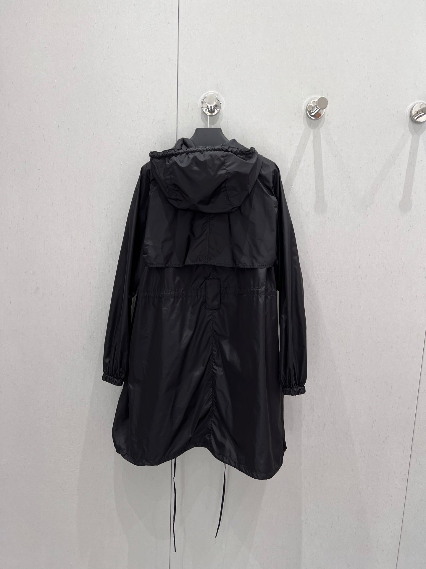 Prada 25 Mid-length Hooded Coat Black Wool 637355