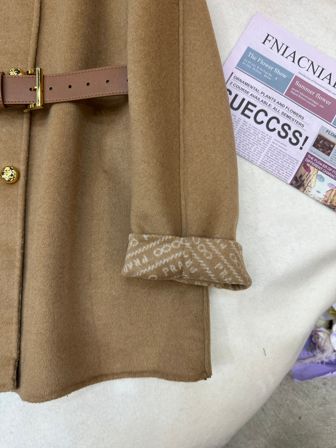 Prada 25 Mid-length Hooded Coat Camel Brown Wool 637354