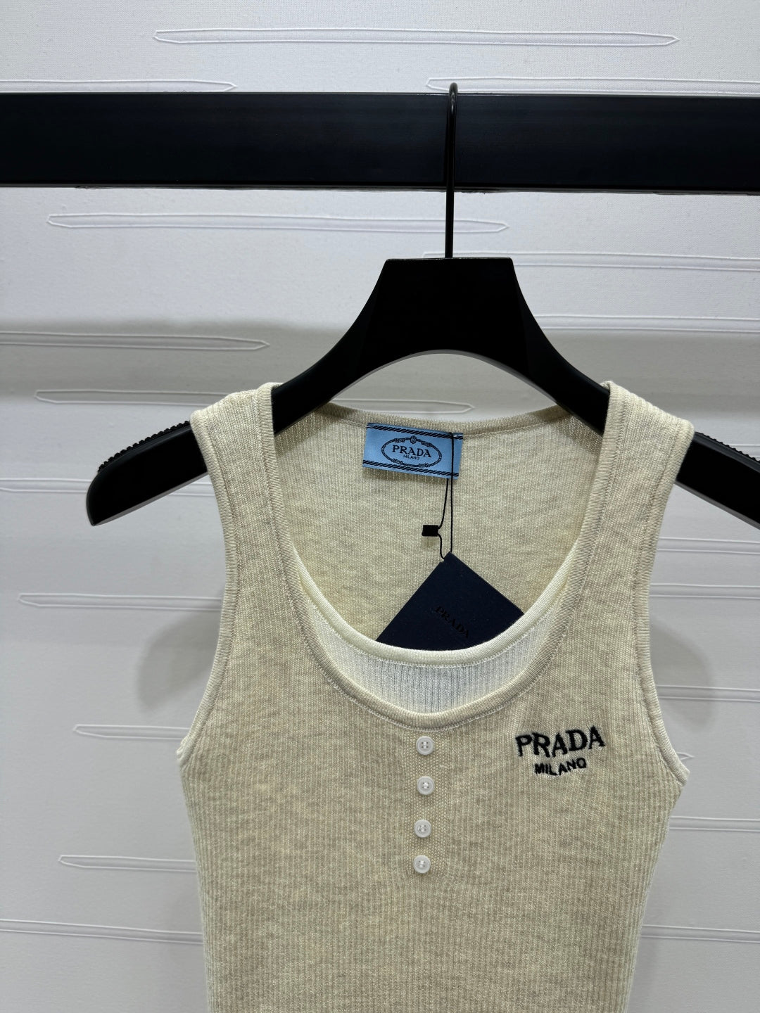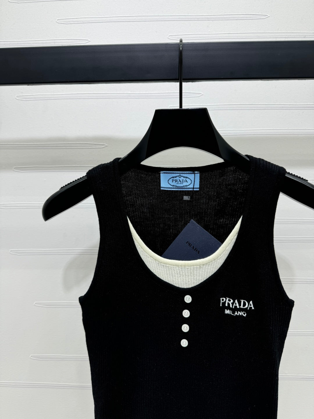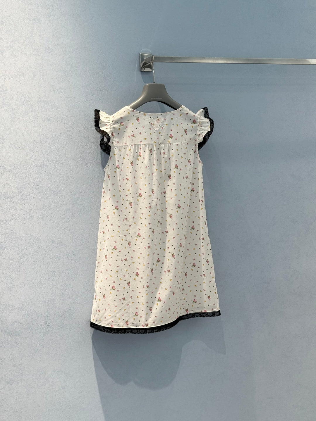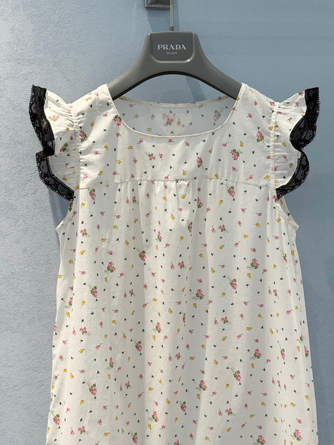 Prada 2025 Hollow lace floral vest skirt White Cotton