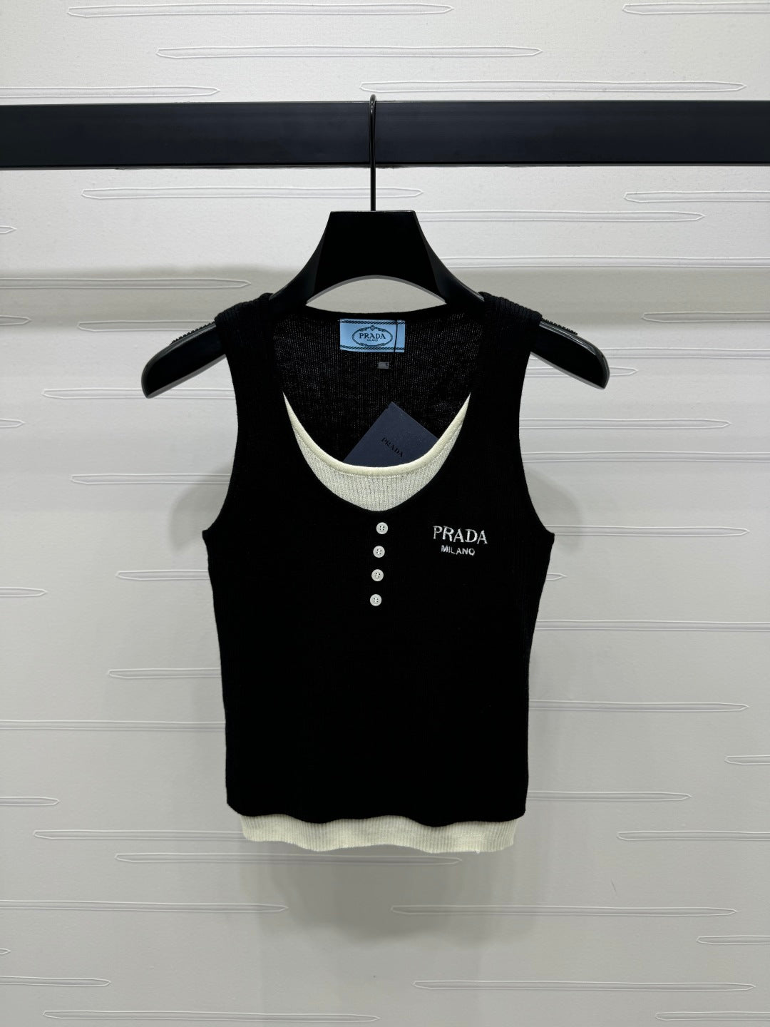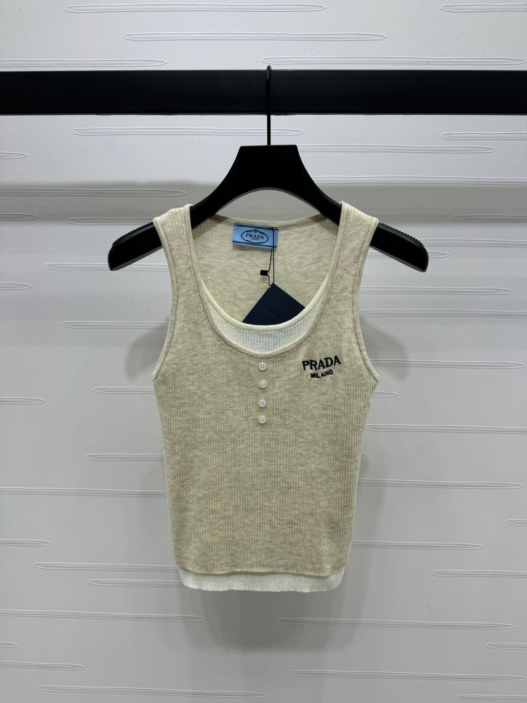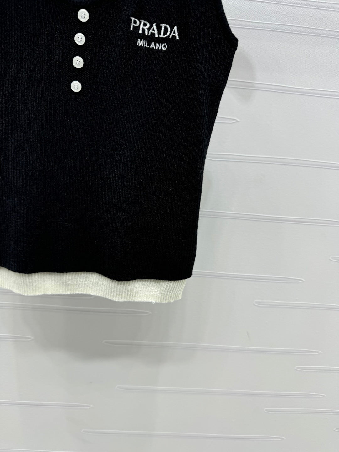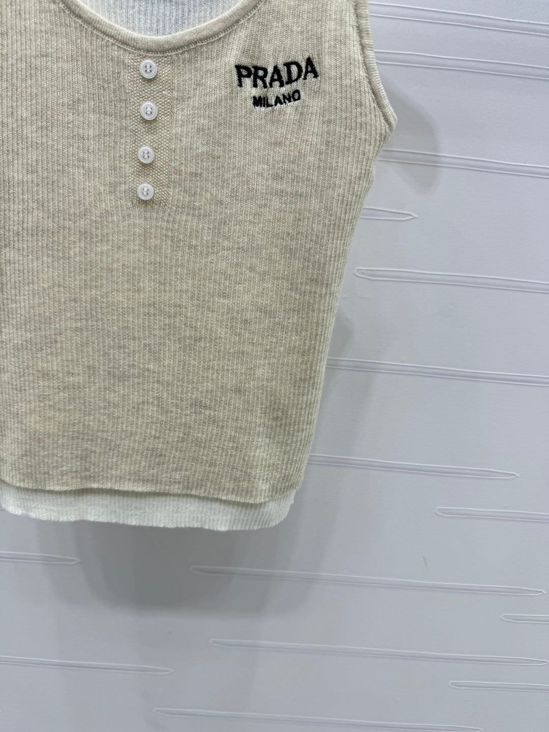 Prada 2025 Hollow lace floral vest skirt White Cotton
