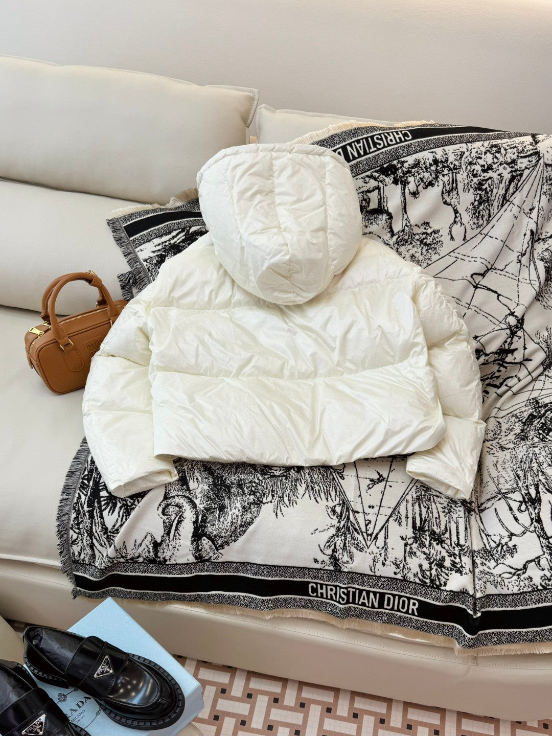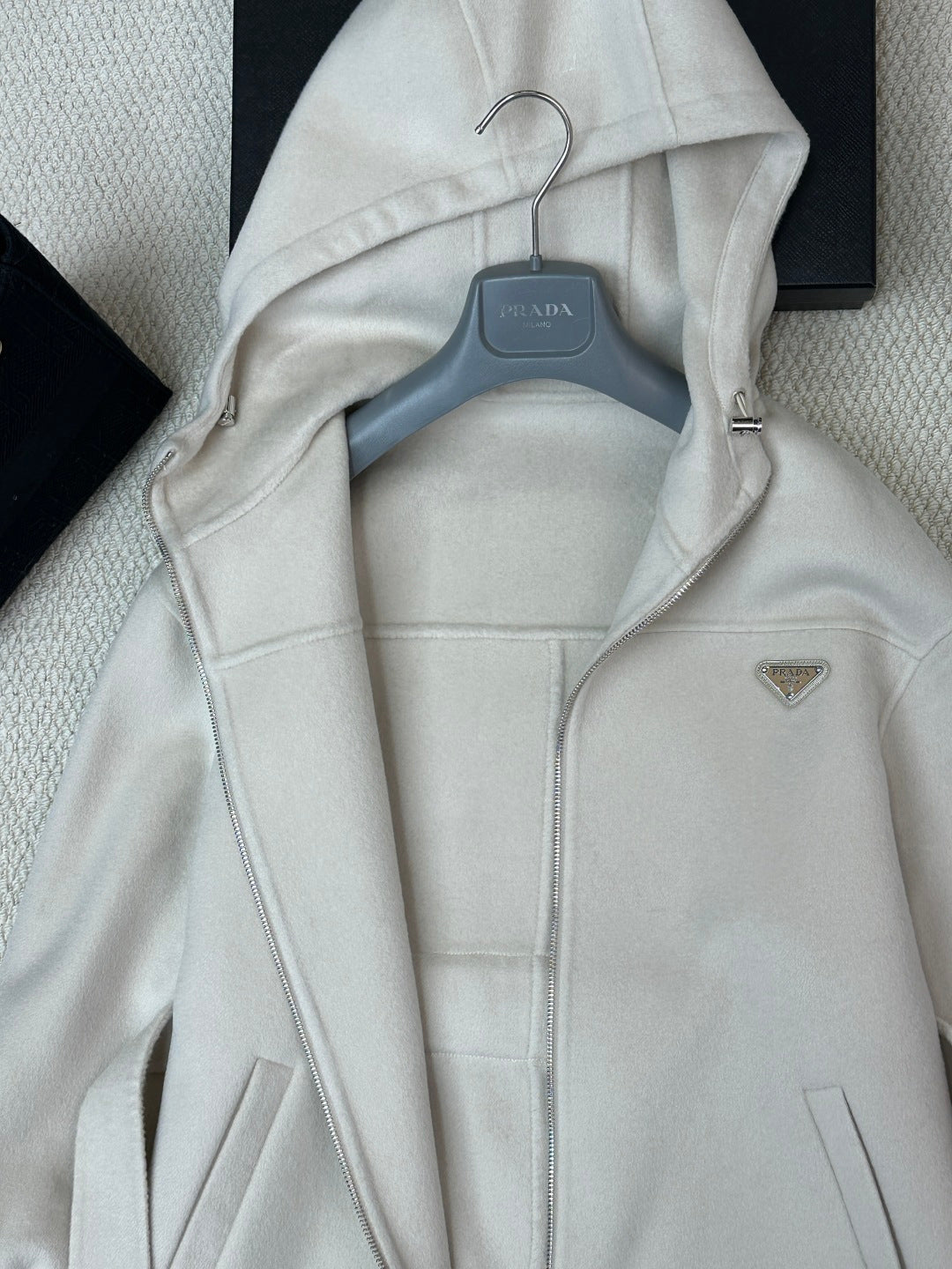 Prada 25 Mid-length Hooded Coat White Black Wool 637352