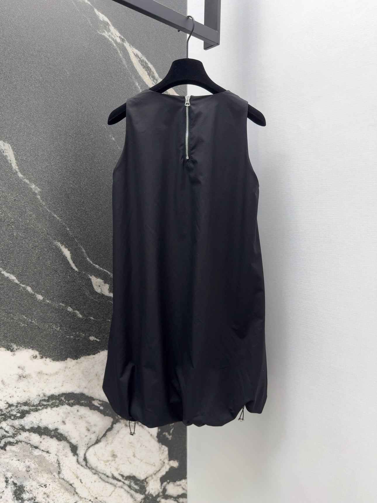 Prada 2025 Sleeveless Dress A-line Babydoll Black Polyester