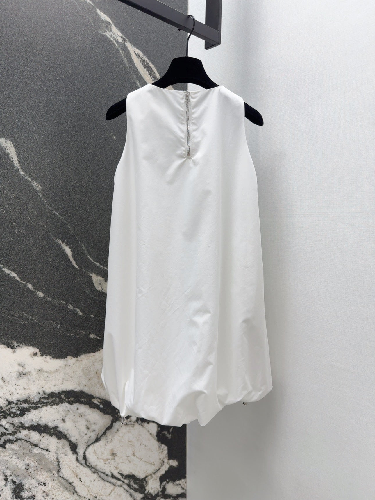Prada 2025 Sleeveless Dress A-line Babydoll White Polyester