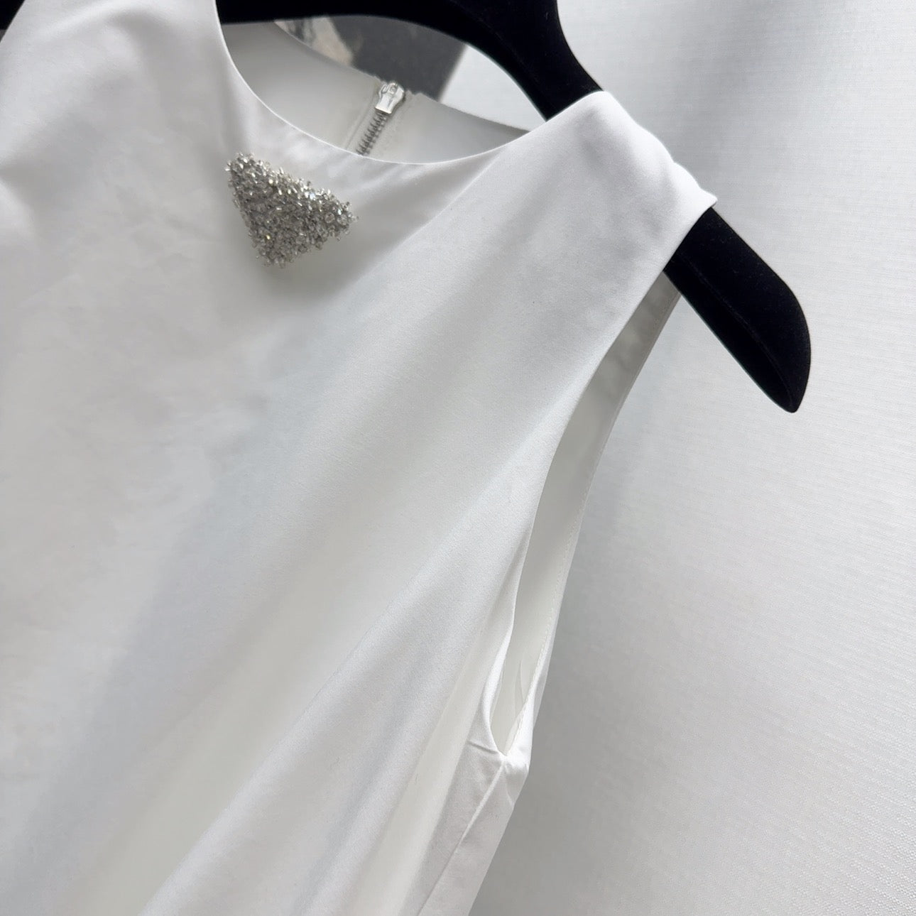 Prada 2025 Sleeveless Dress A-line Babydoll White Polyester