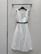Prada 2025 Sleeveless Dress with Belt Navy Blue and White Linen