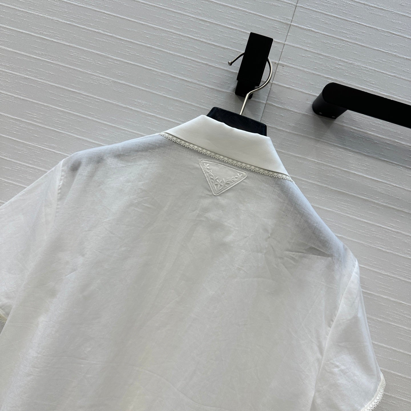 Prada 25 Lace Short-sleeved Shirt White Cotton