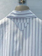 Prada 25 Striped Short-sleeved Collared Shirt Blue Cotton