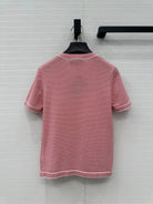 Prada 25 Striped Short-sleeved Knitted Top Red Cotton
