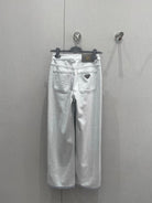 Prada 25 Vertical Striped Denim Pants White Cotton Polyester 215076